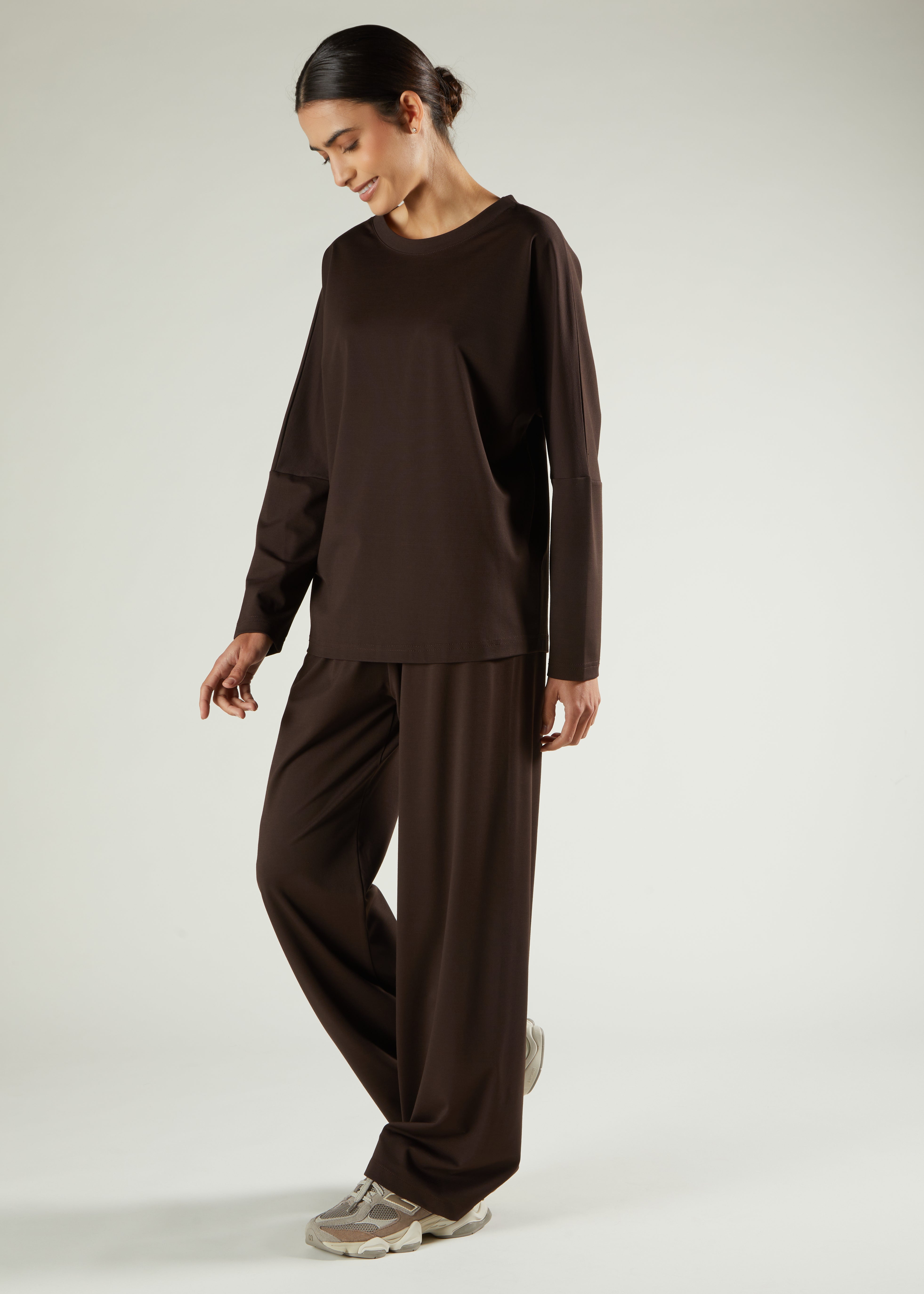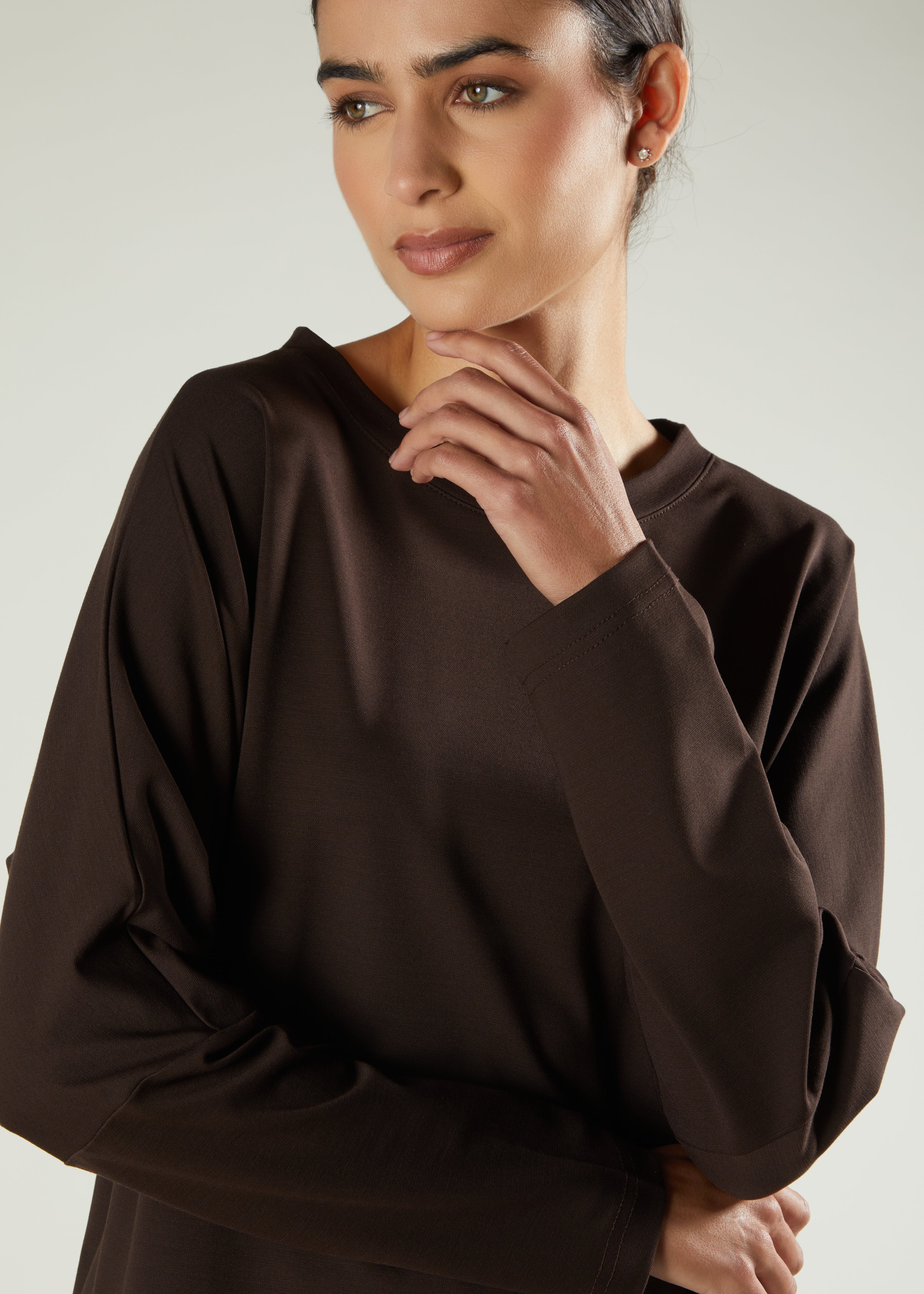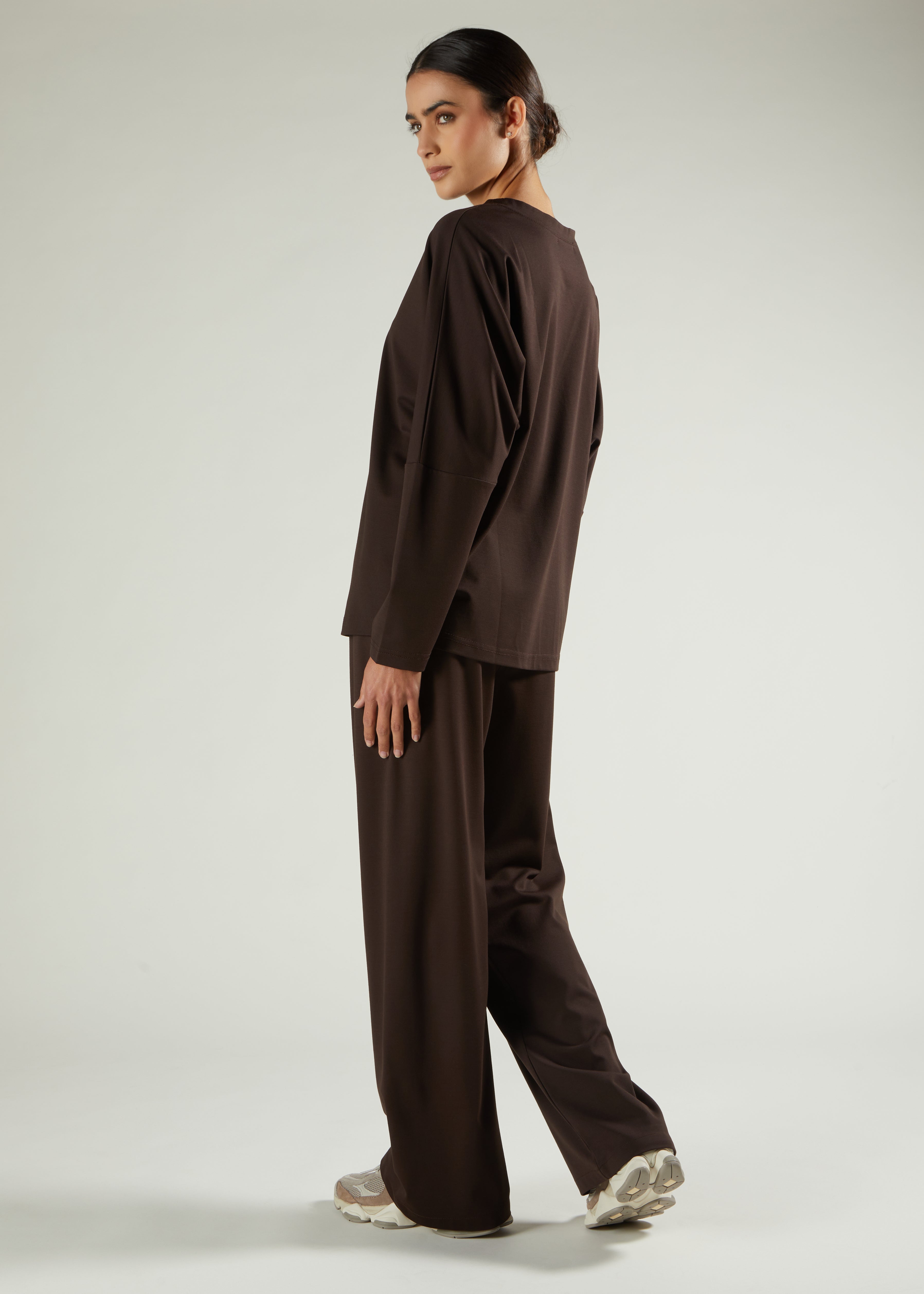 Aab basics prioritise practical comfort - ideal for travel or daily wear. This understated set features a modest-length top paired with mid-flare trousers made from soft, comfortable fabric. Its versatile design ensures effortless, fuss-free dressing for any occasion, making it a reliable choice for both everyday life and journeys.