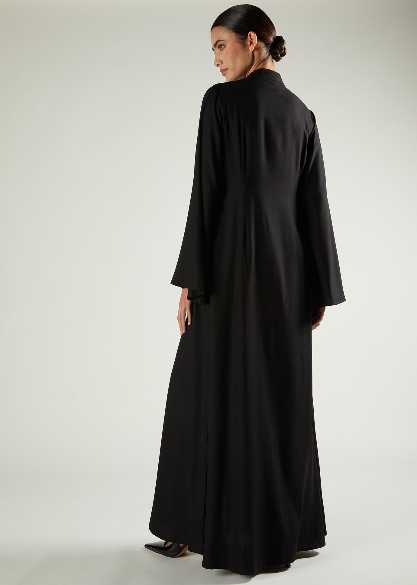 Elevate your everyday modest wear with our Asymmetric Abaya in black. Designed with clean lines and a flattering drape, this garment features a modern asymmetric button detail that flows gracefully down the front. Made from soft, breathable fabric for all-day comfort, it seamlessly blends modesty with minimalist sophistication. Perfect for both casual and smart styling, with discreet side pockets adding a touch of practicality.