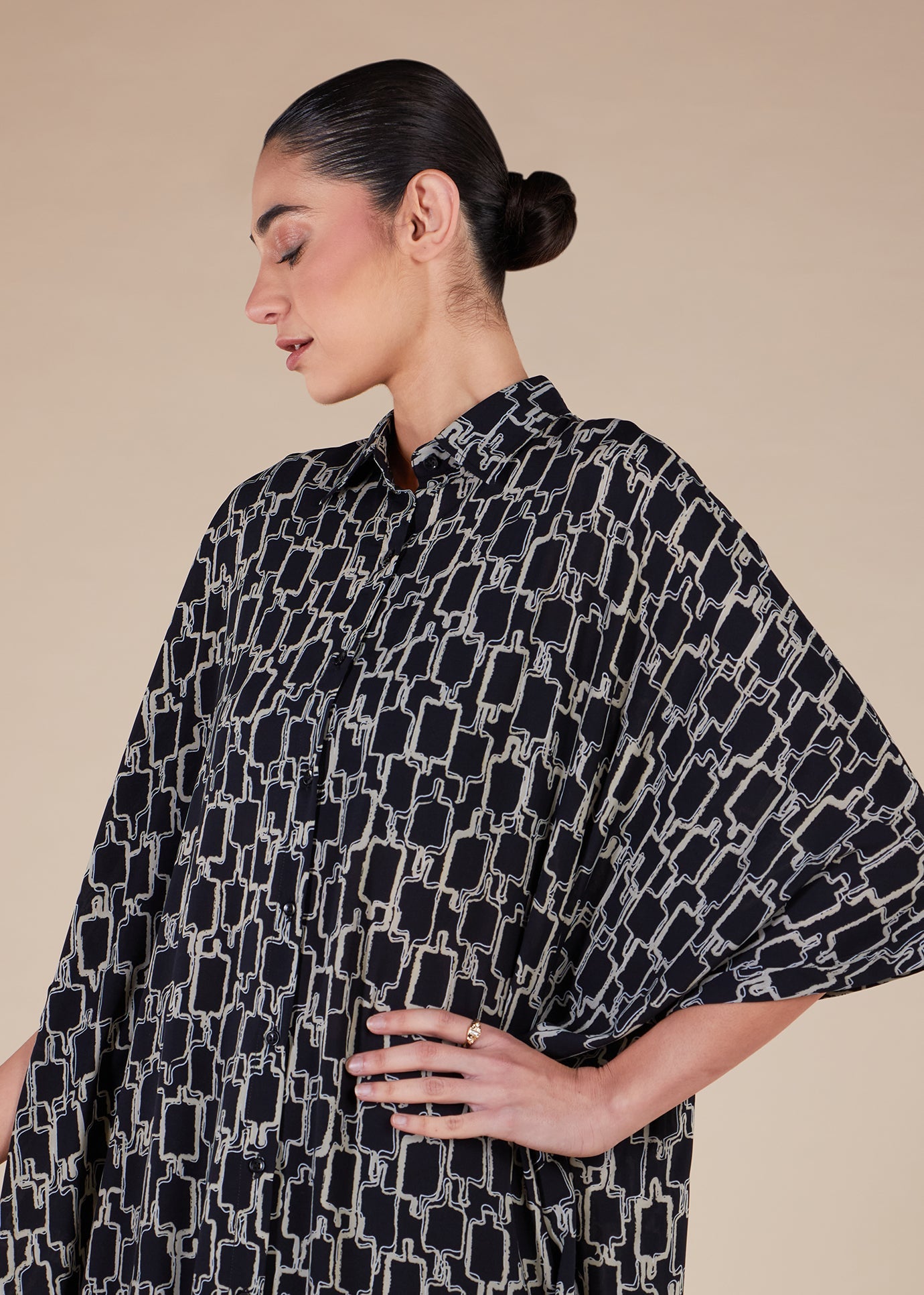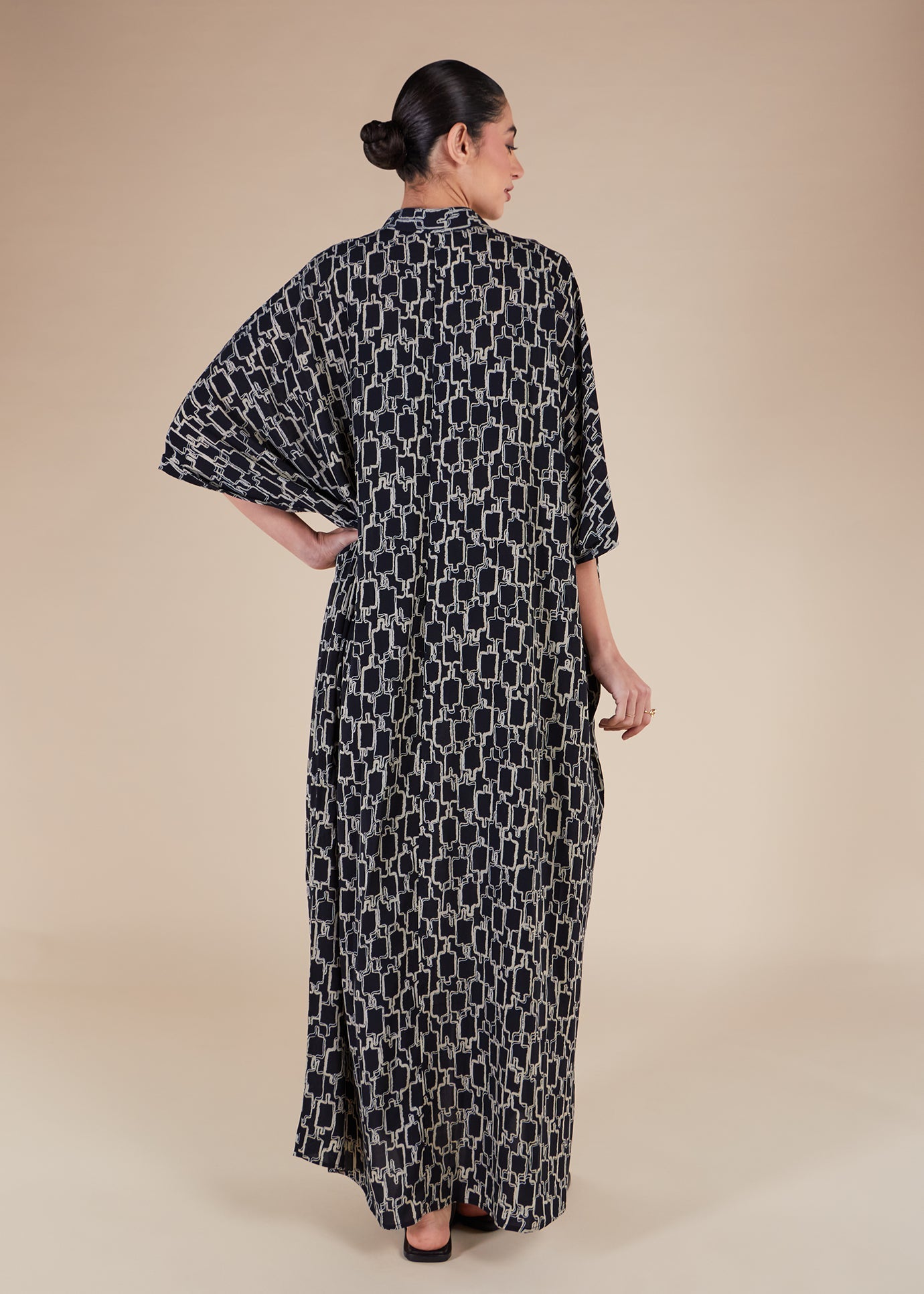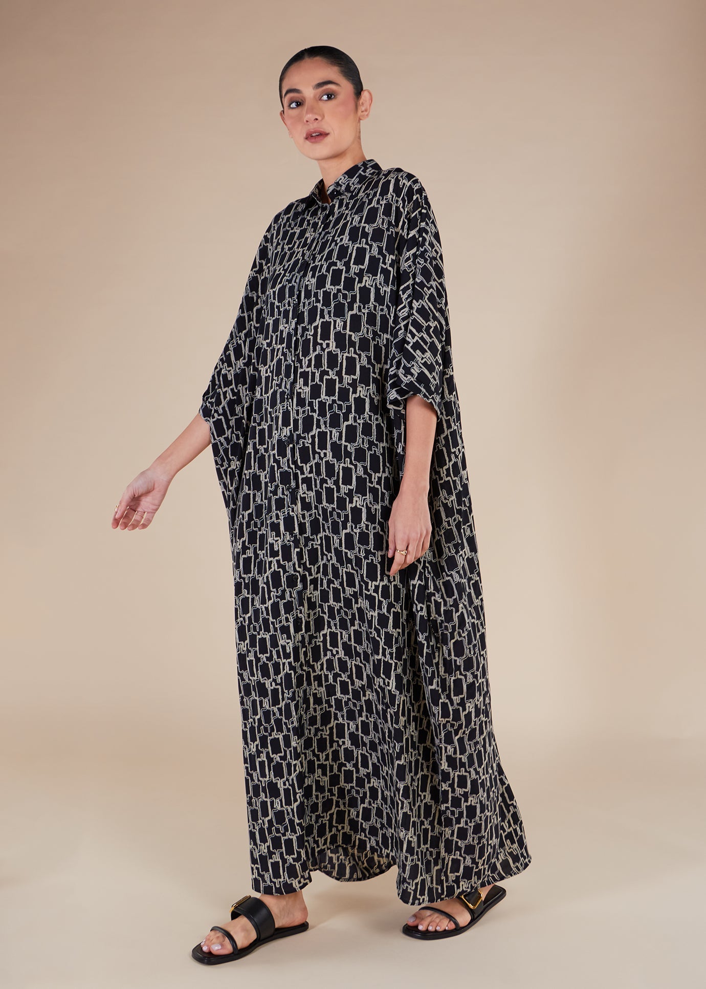 Black Print Shirted Kaftan - Final Sale