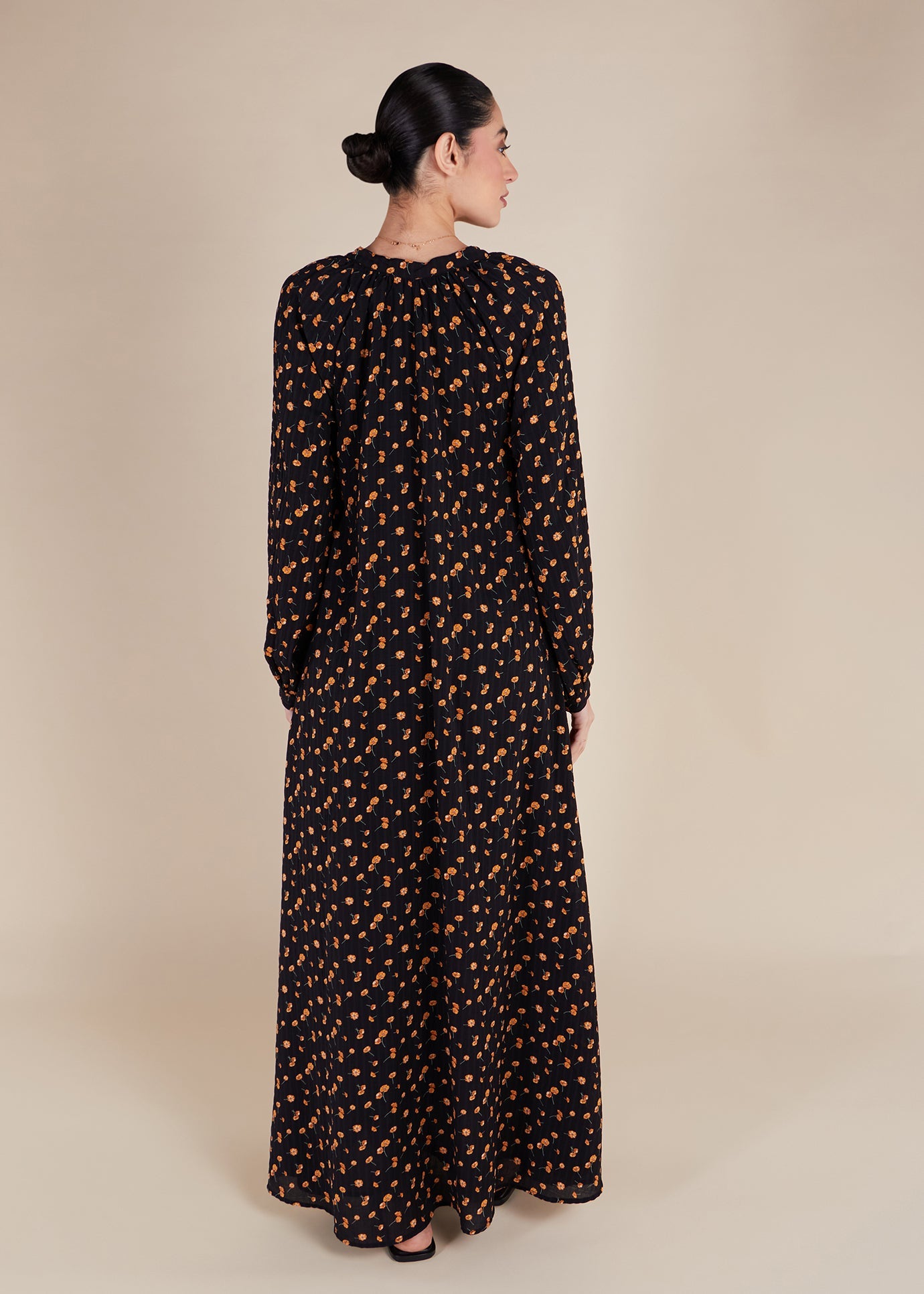 Made with a beautiful floral print of yellow buttercups on a black background, Buttercup Maxi is the perfect addition to your spring wardrobe. Its pleated v neckline and self-fabric belt provide versatile styling options, while discreet side pockets add functionality. The A line silhouette and light pleating around the back of the neckline ensure a comfortable and flowy fit, making this maxi a must-have for any occasion.