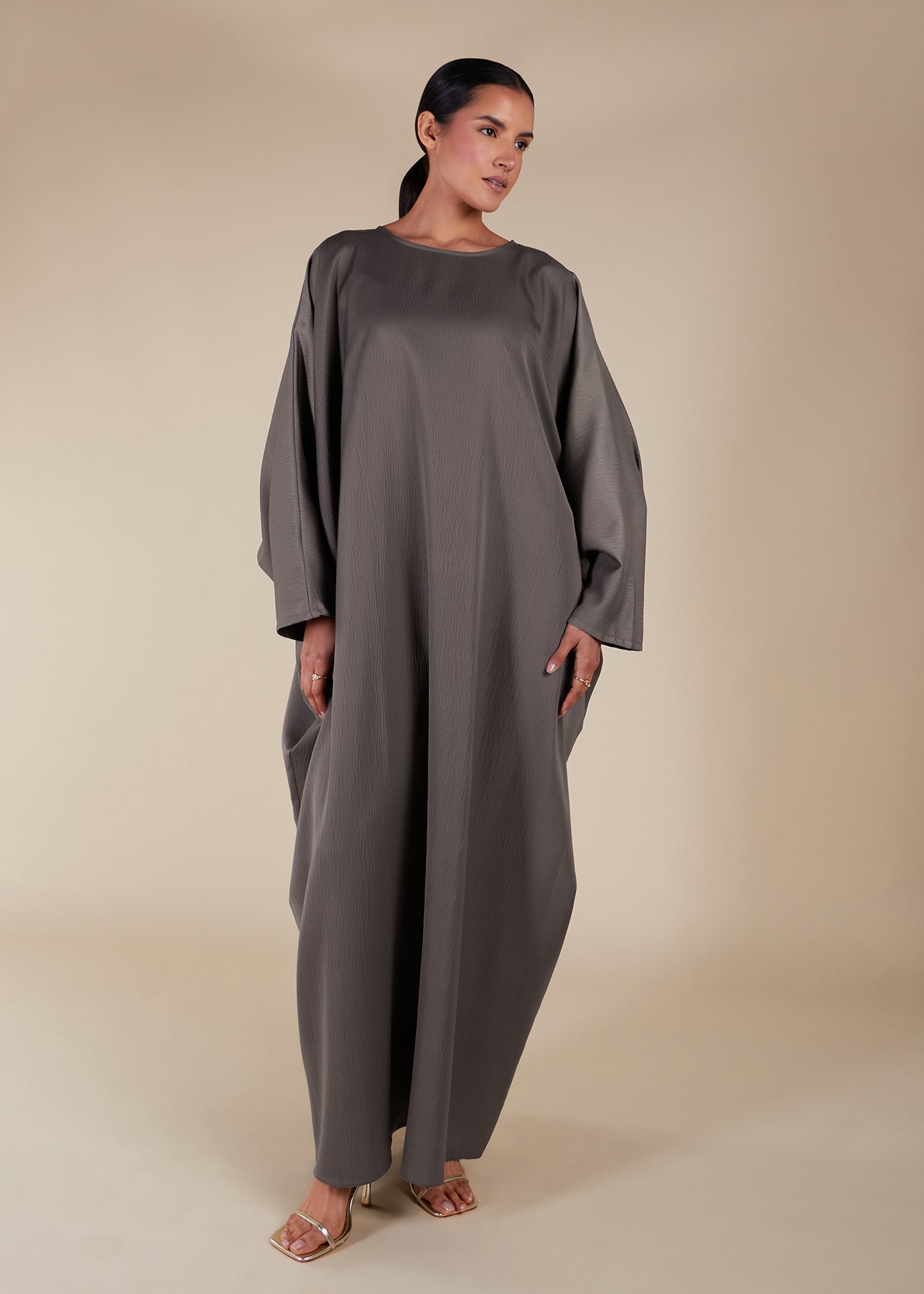 This Butterfly Abaya in Quartz features a self-print satin fabric with a loose-fitting butterfly cut. With its modest and elegant drape, it is available in four beautiful colours and is perfect for occasions during and beyond Ramadan.