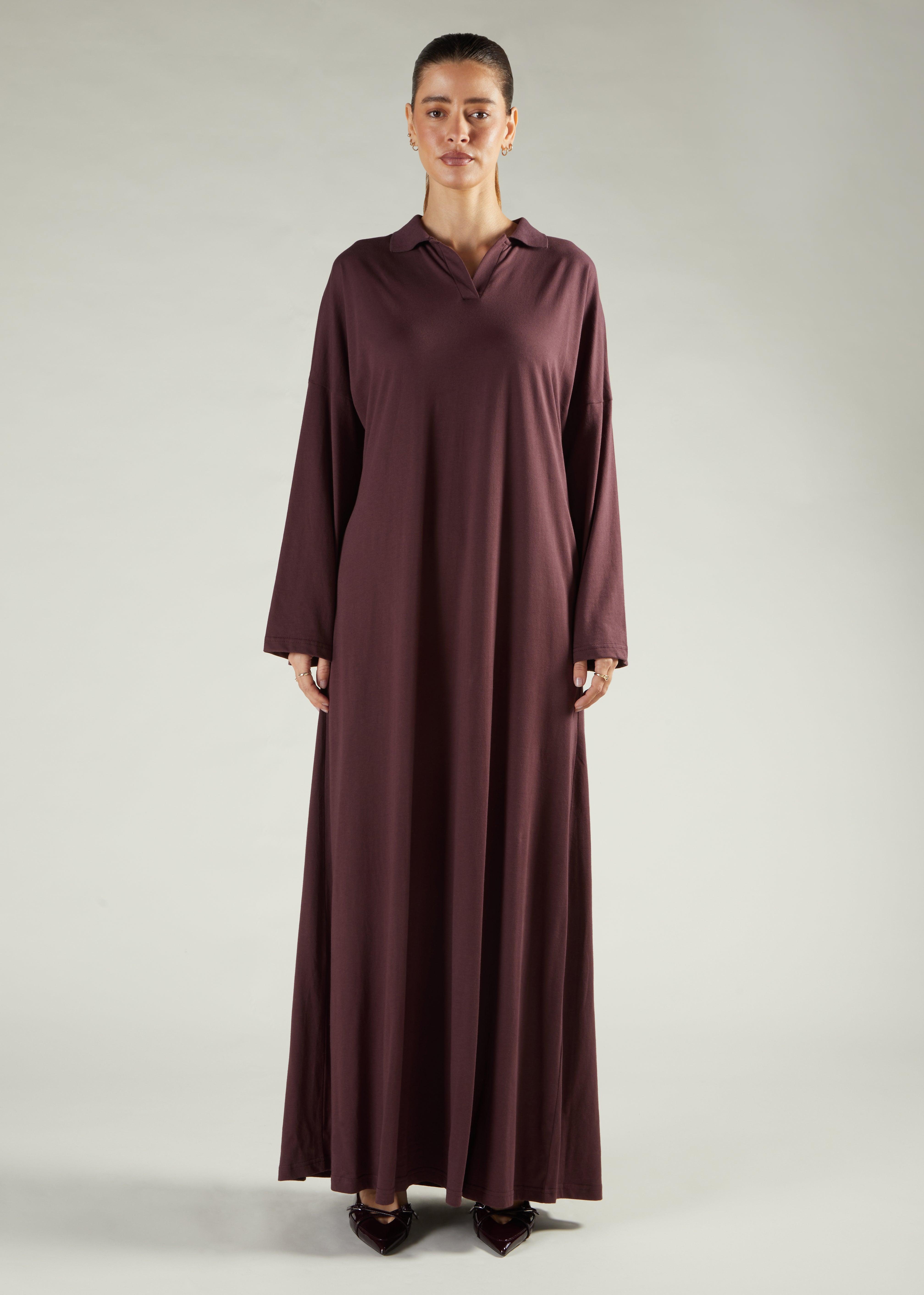 Casual Polo Abaya Brown
