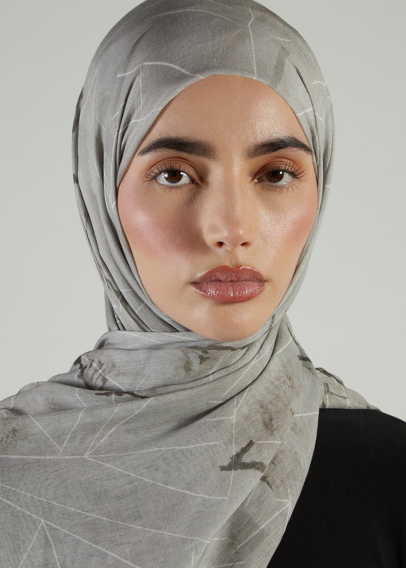 Designed in-house and exclusive to Aab, these printed hijabs feature original artwork by our London College of Fashion graduated designer, completed with a subtle Aab logo finish.