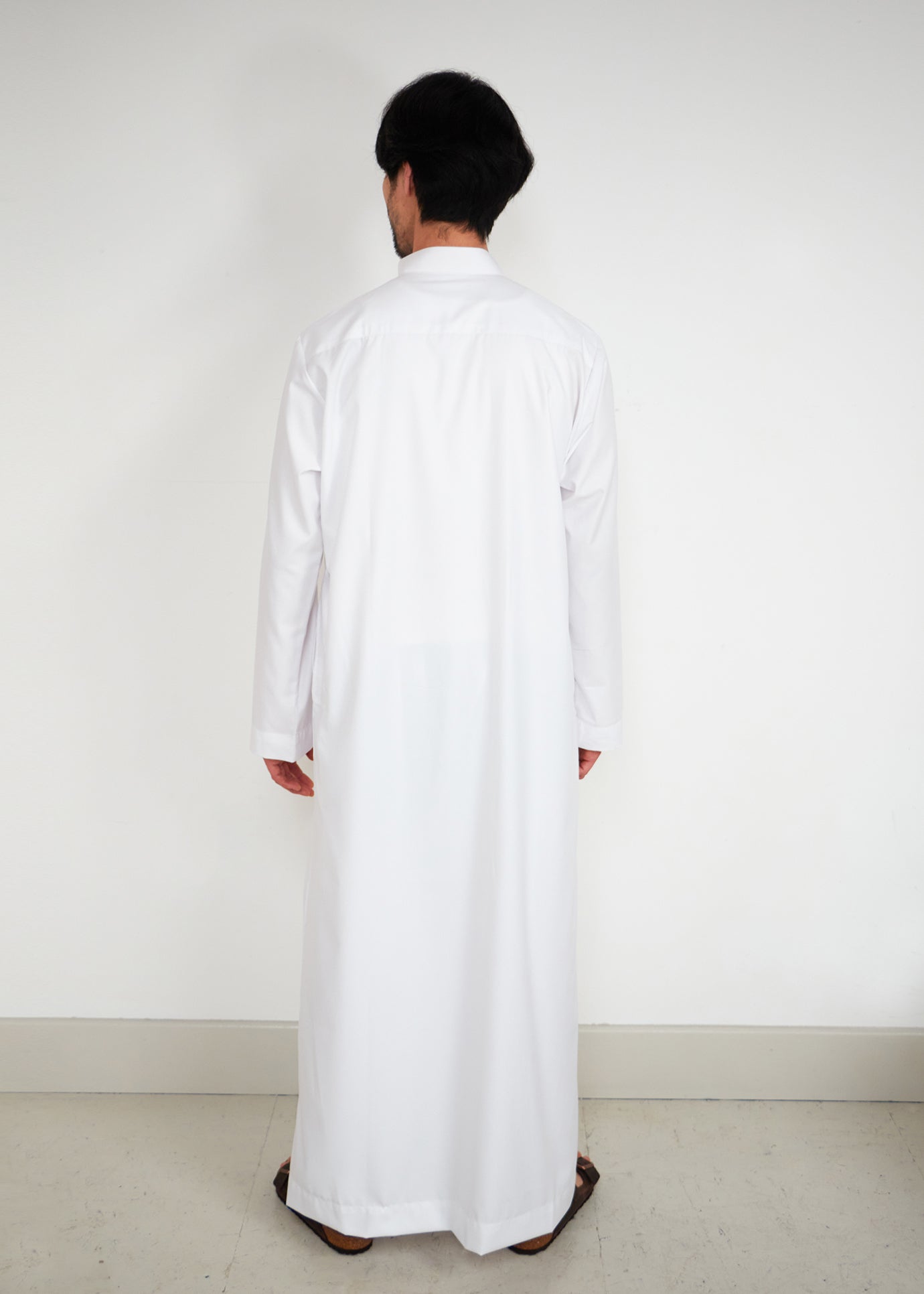 Classic Thobe available in four muted tones specially chosen by Aab, has a fluid look and feel - features side pockets and concealed buttons with a round collar.