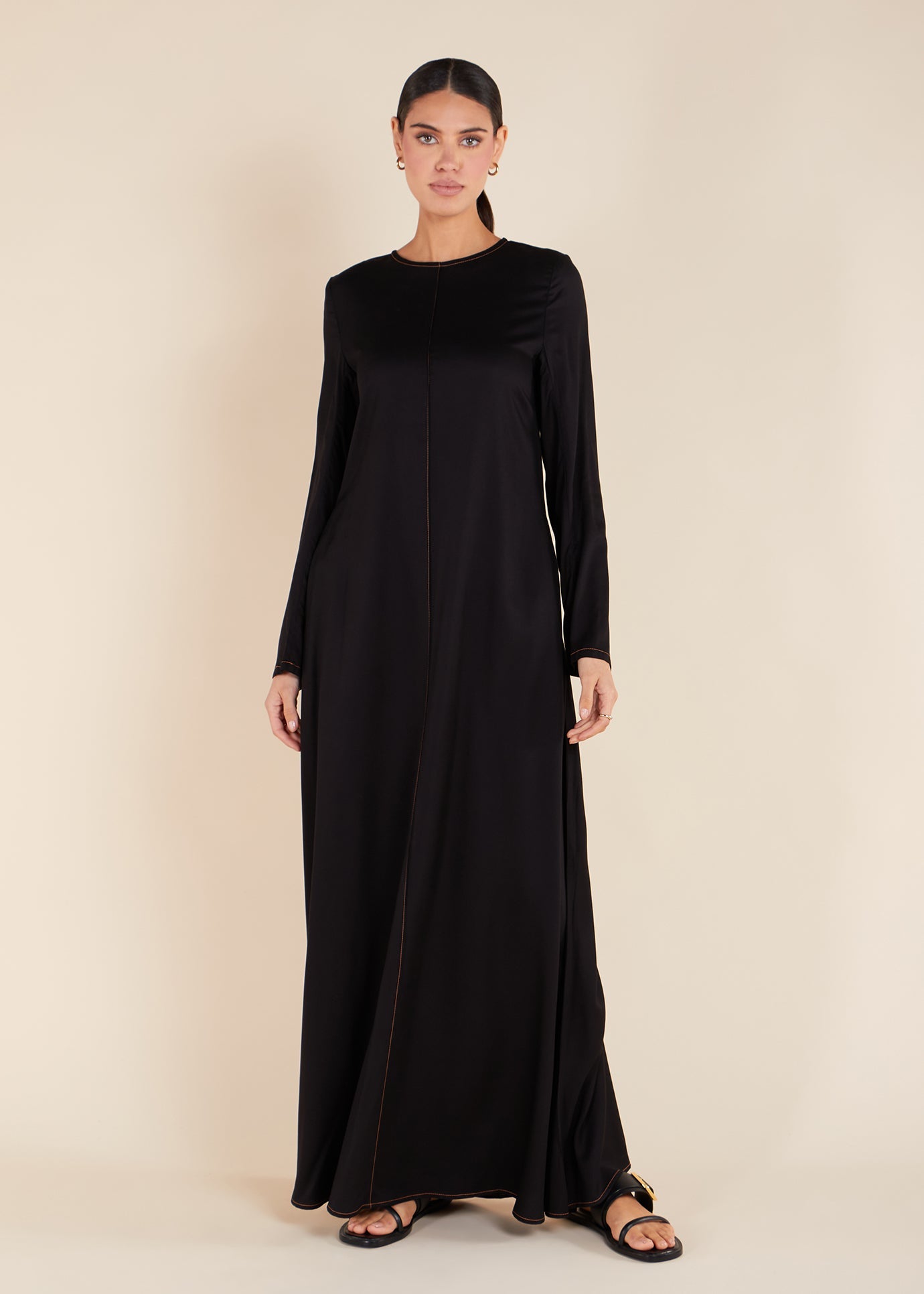 Contrast Stitch Abaya Black