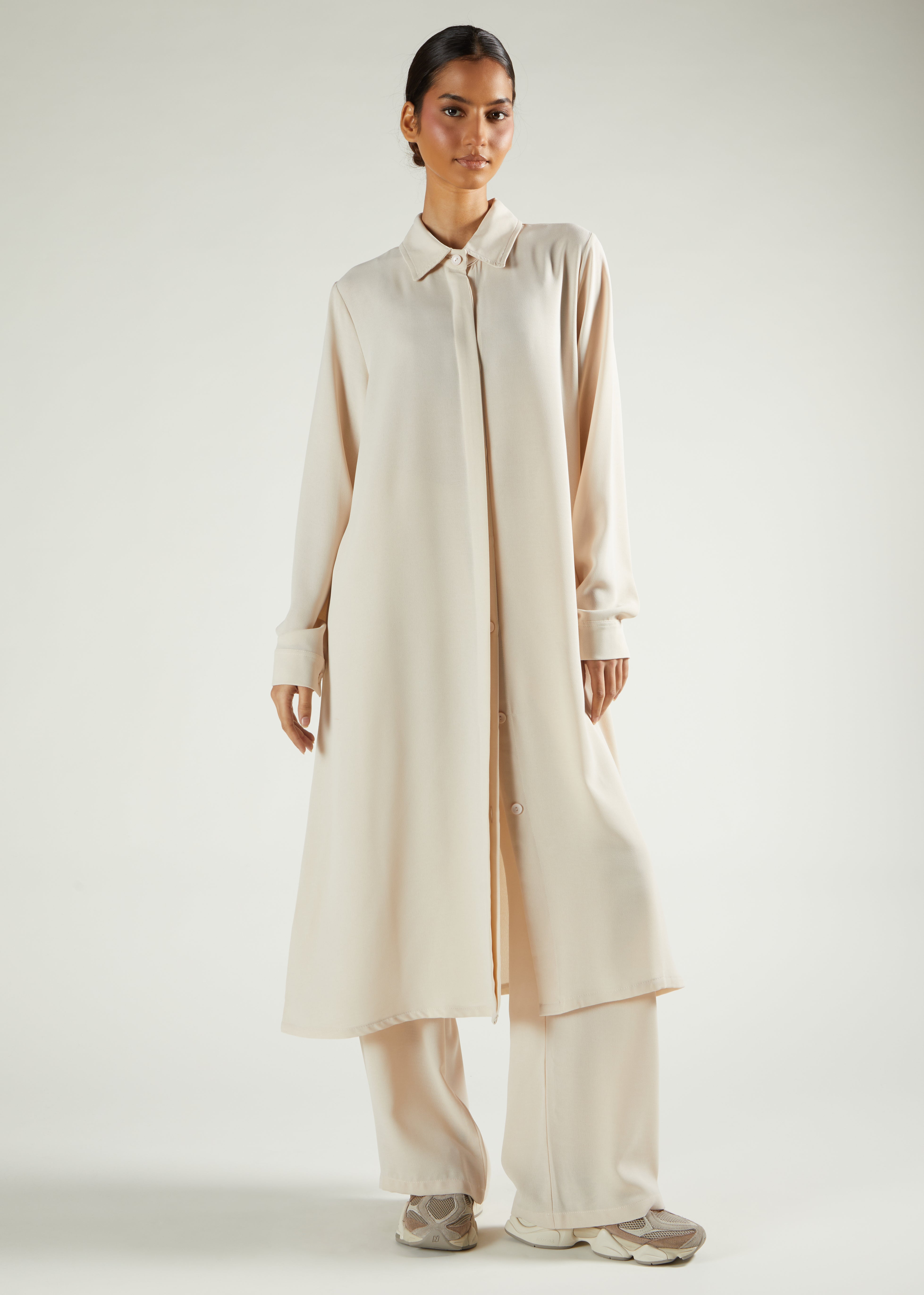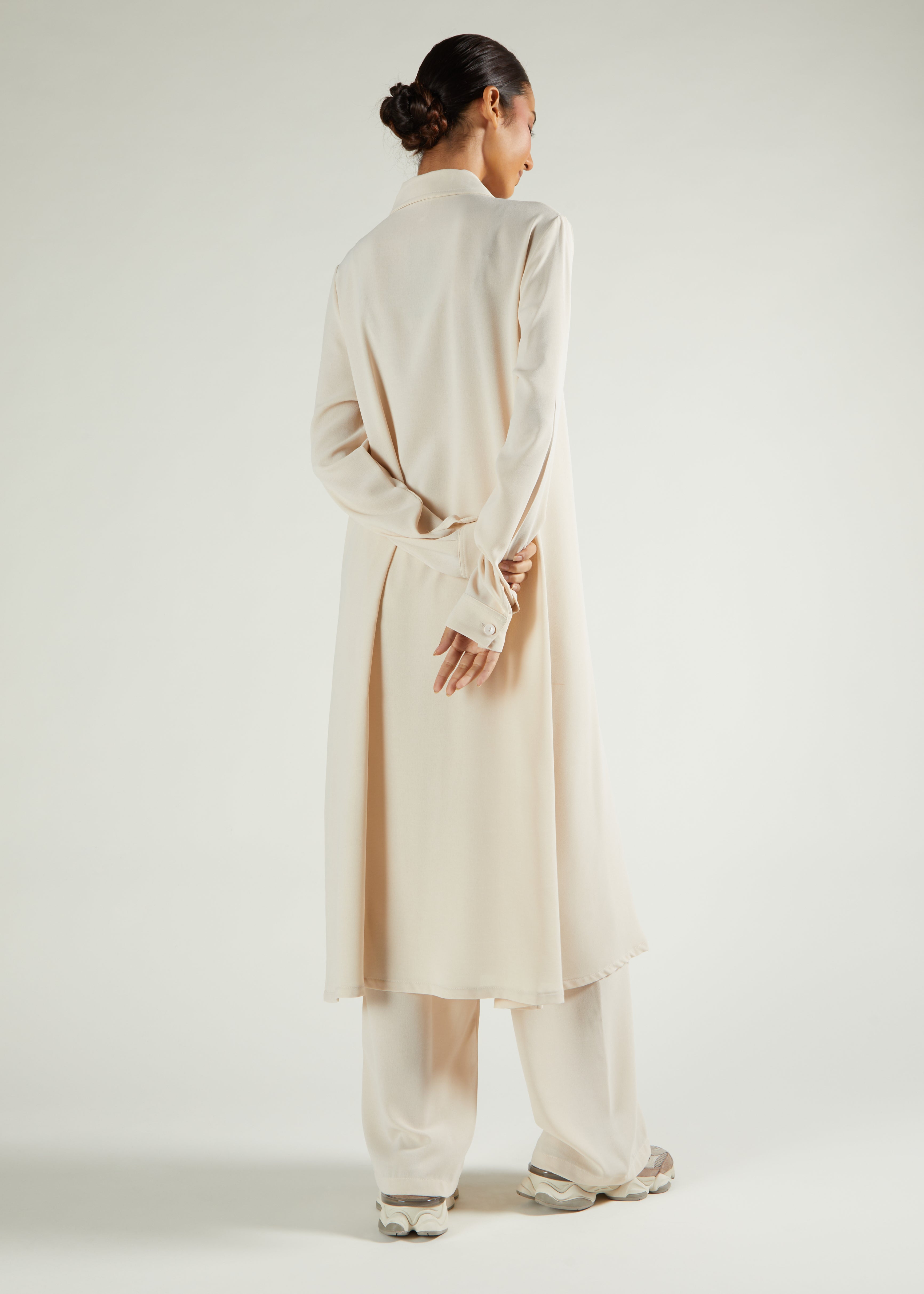 This versatile co-ord set combines a relaxed-fit shirt with mid-flare trousers in carefully curated seasonal hues. The modest proportions and generous cut allow effortless layering, making it an excellent foundation piece for transitional dressing. Designed to work seamlessly with outerwear or paired with our Second Skin collection for added warmth and dimension. Choose from three colour options that complement any seasonal wardrobe.