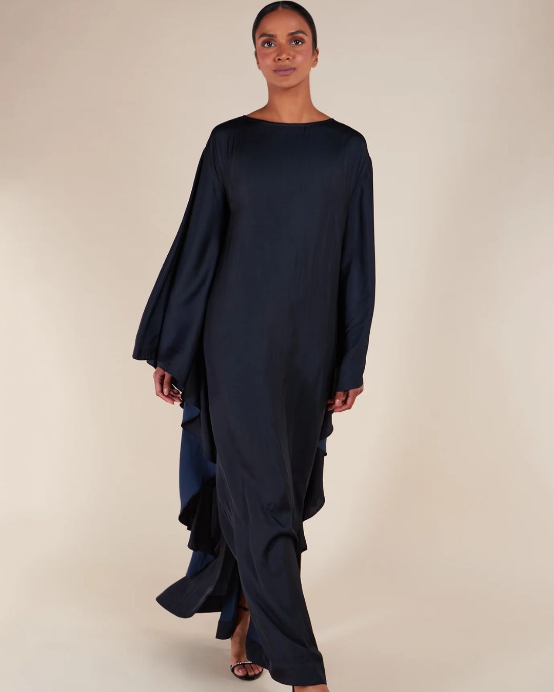 Experience elegance with our Floaty Kaftans. Made from a light satin fabric, this kaftan features a loose fit silhouette that cascades gracefully around the body.