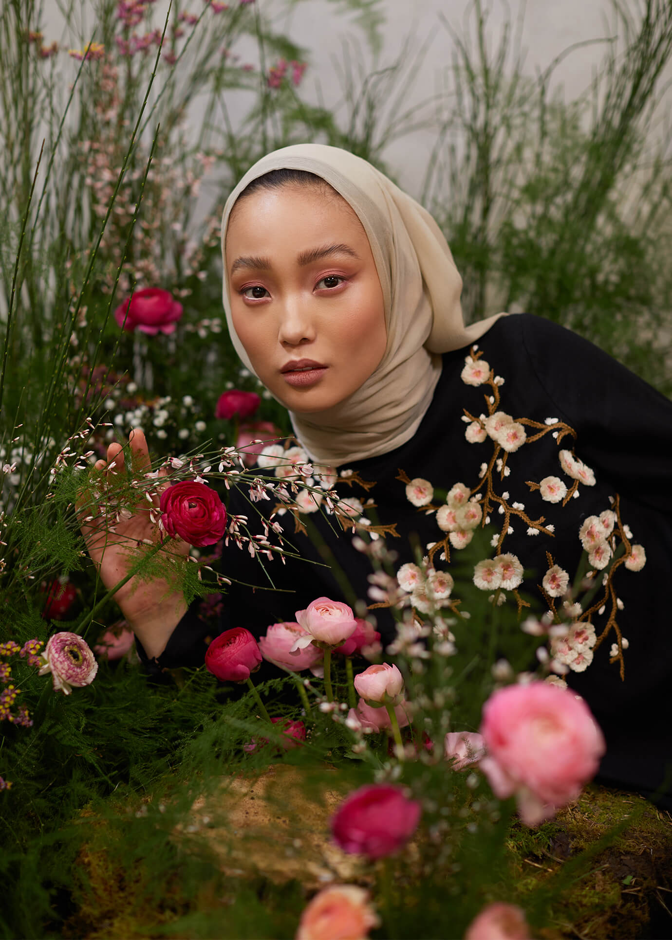 This exquisite abaya boasts 3D embroidery detail in beautiful floral motifs, flowing down both the back and front.