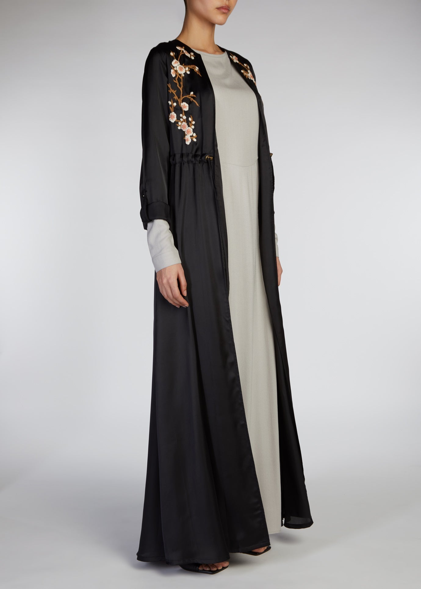 Frangipani Kimono is made from a soft satin fabric featuring beautiful floral embroidery on the back of the garment and front panels too. An elegant drawcord feature allows you to cinch the kimono in at the waist or simply leave open.