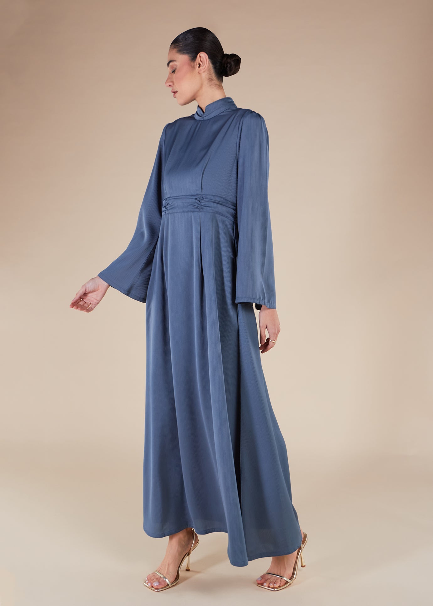 This garment offers a mid to loose fit, with fringed edges on the sleeves. It is a great pairing with the Rayie Abaya or a straight fit maxi. The fabric is non-crease and features subtle pleating.