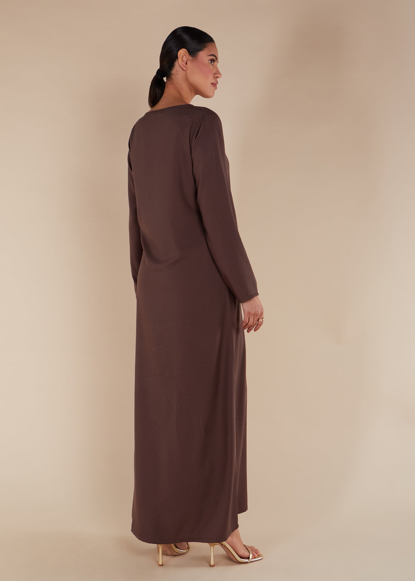 Full Slip Mauve is a full sleeve slip dress designed with full length options, discreet pockets, and a classic A-line cut that offers a flattering silhouette and practicality in one.