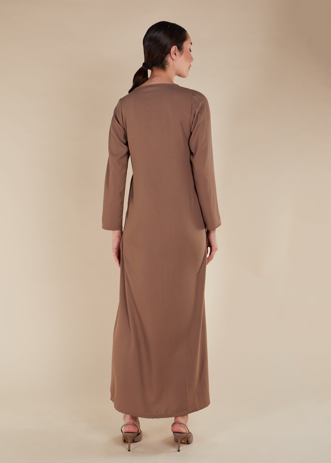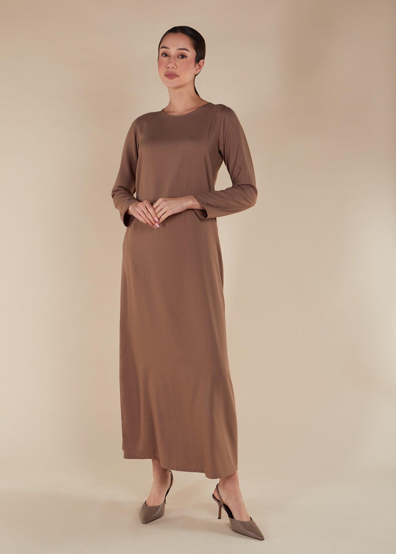 Full Slip Mushroom is a full sleeve slip dress designed with full length options, discreet pockets, and a classic A-line cut that offers a flattering silhouette and practicality in one.
