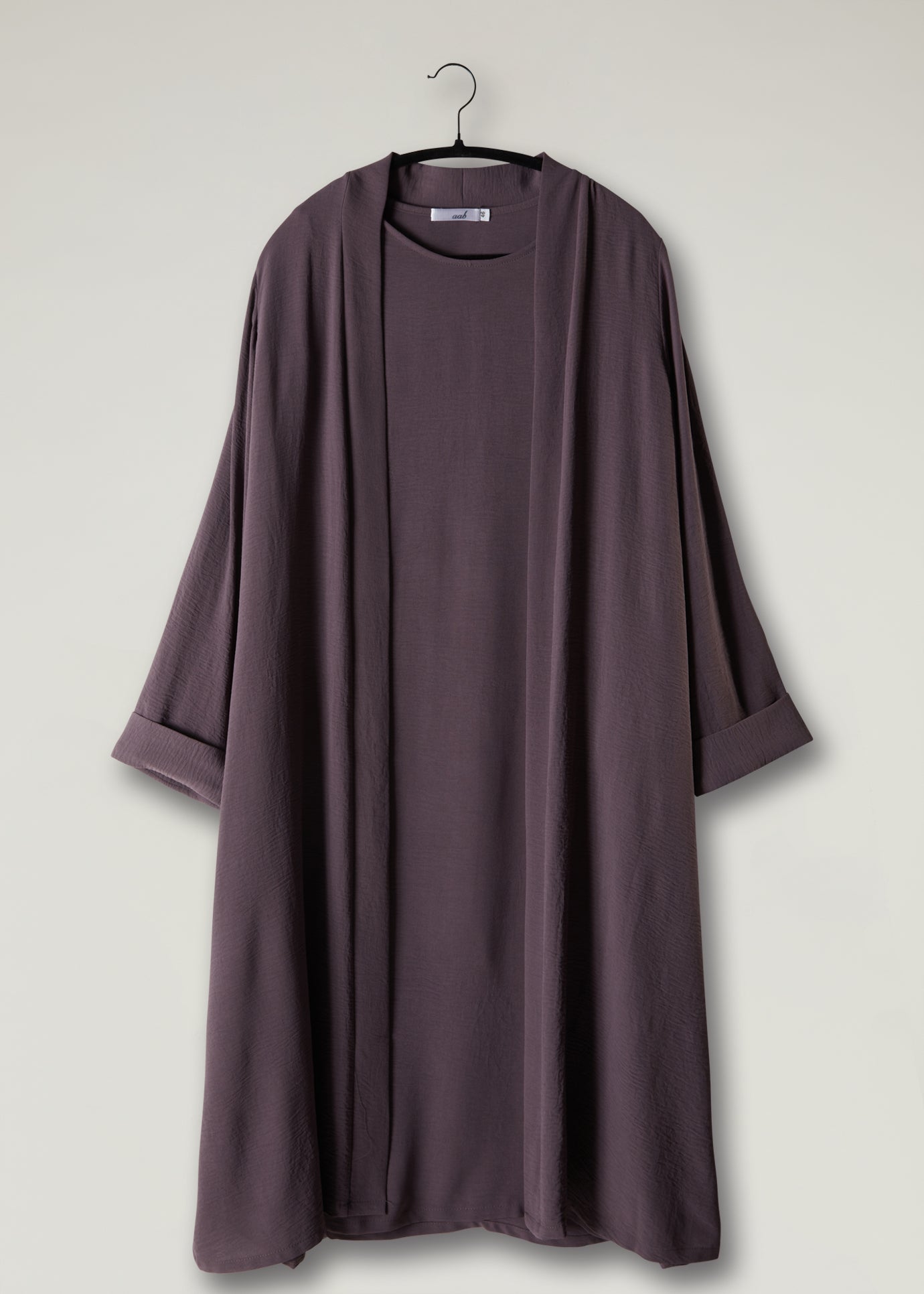 This elegant Two-Piece Open Abaya set includes a Full Sleeve matching slip. Perfect for everyday wear, it can also be dressed up with accessories for an evening look. The full sleeve slip dress can be worn as a maxi dress on its own or paired with the open abaya for a stylish ensemble.