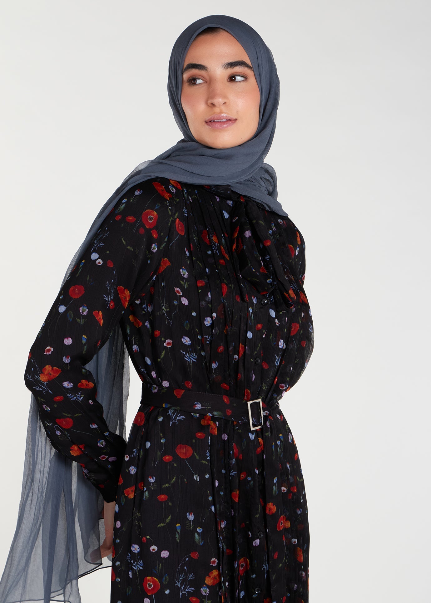 Enhance your wardrobe with the stunning fully lined Hannoun Maxi Dress, featuring a beautiful floral print, cuffed sleeves, and a convenient optional belt, perfect for any special occasion.