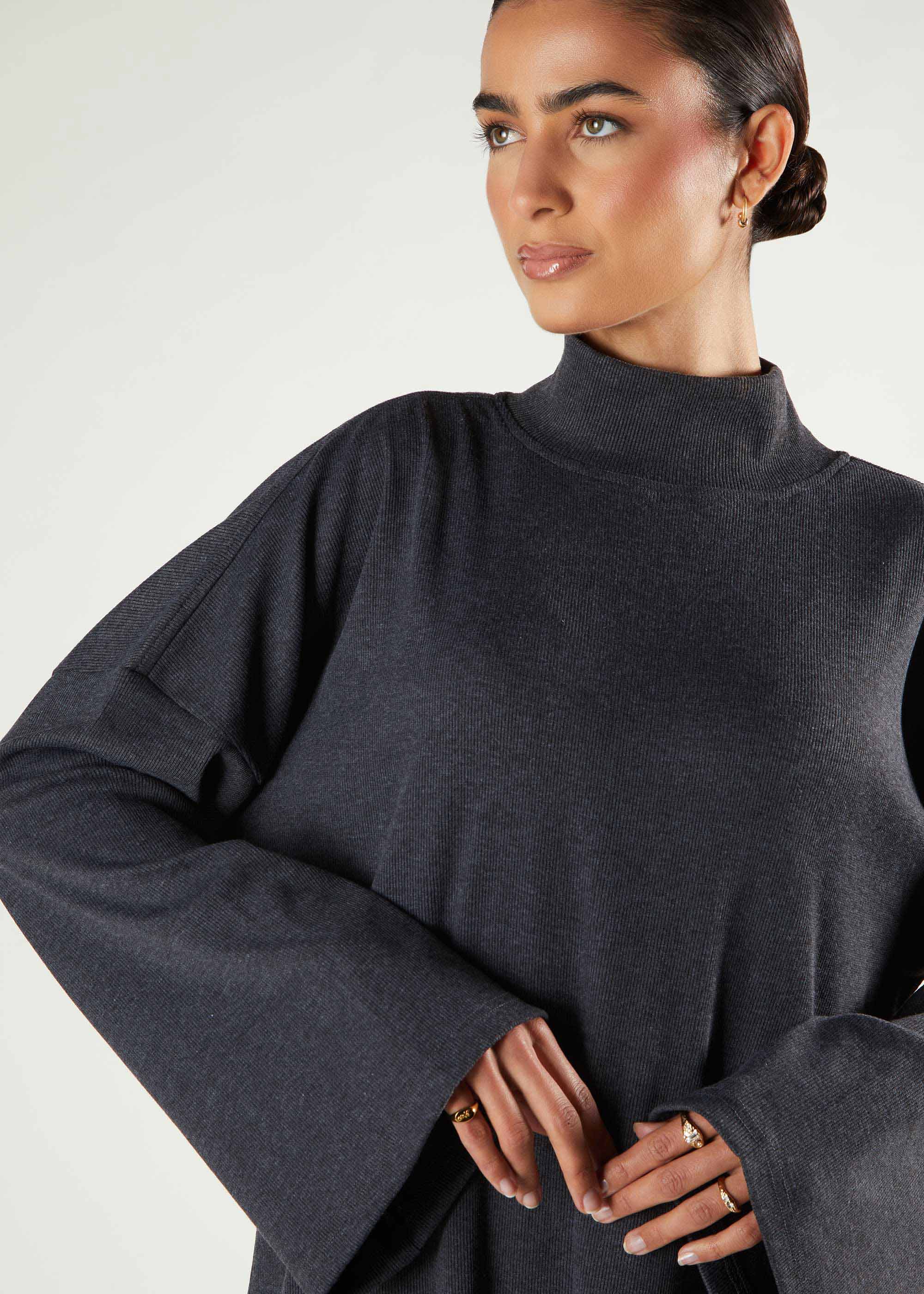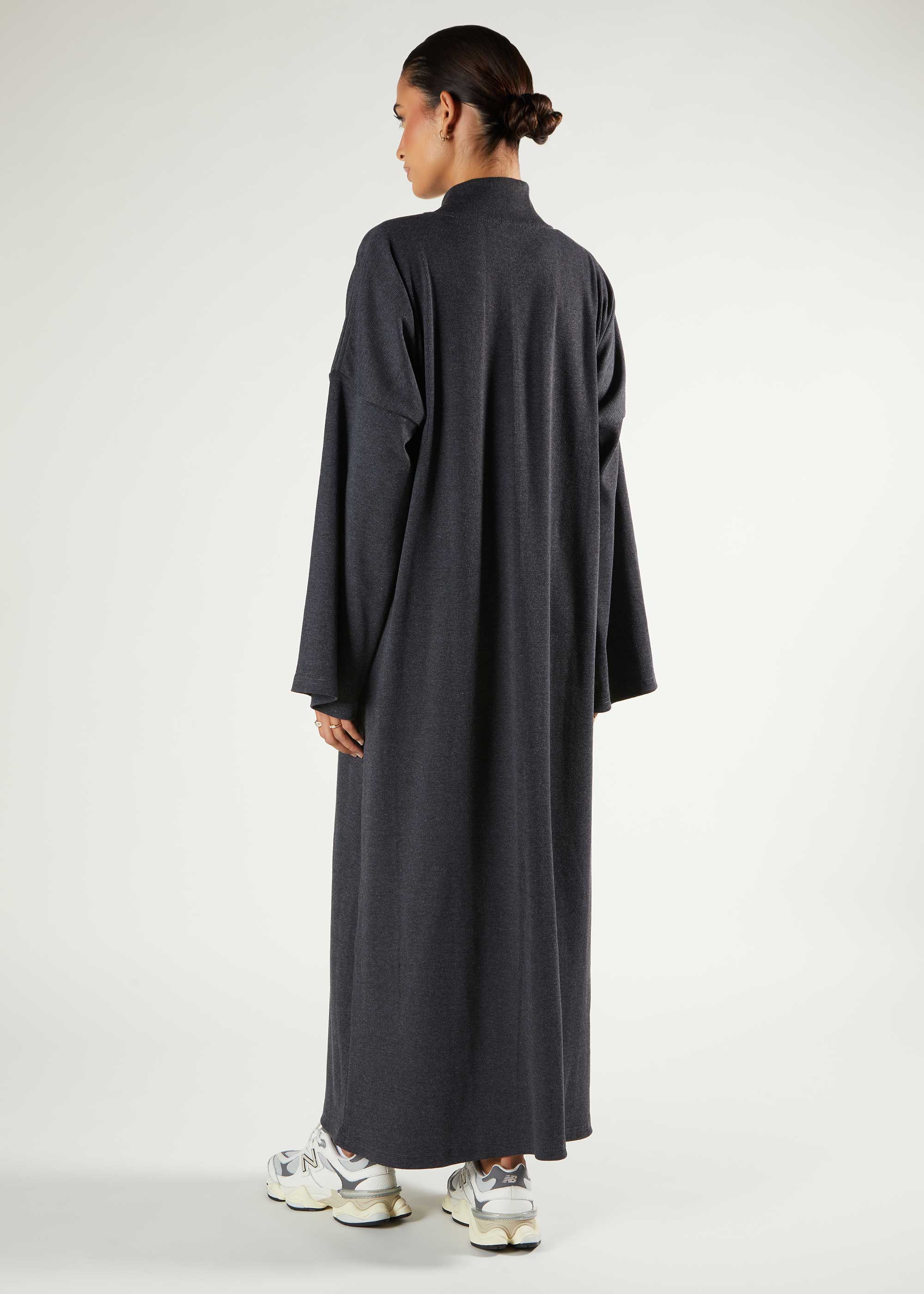Made from fine ribbed fabric, this essential mid-weight abaya is perfect for layering with outerwear, providing warmth throughout the cooler seasons. Featuring a loose fit and subtly wider sleeves, it comes in three versatile neutral shades for effortless styling.