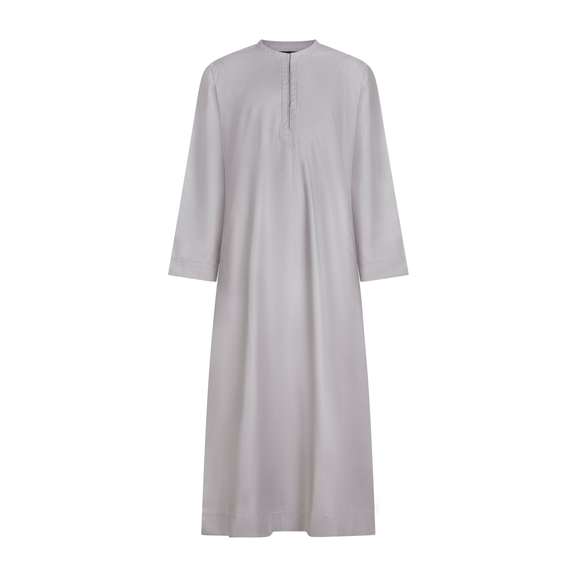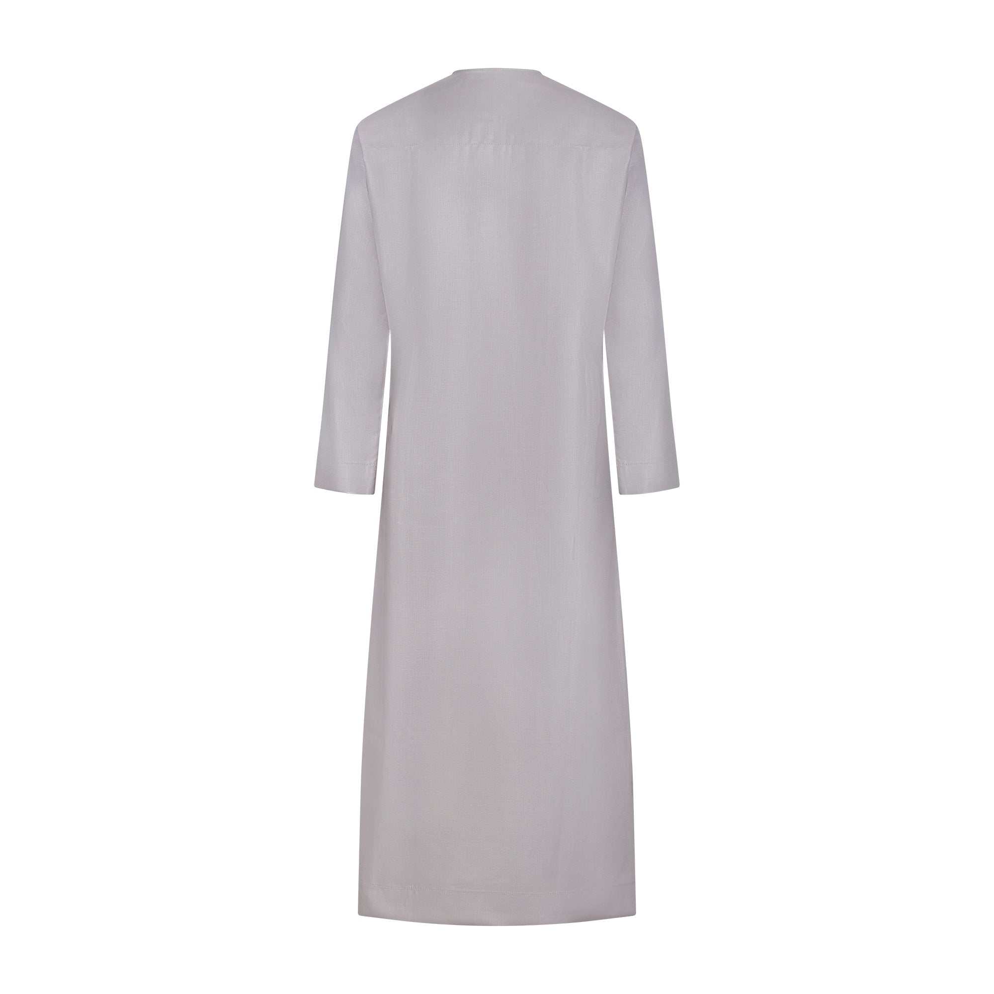 Omani Kids Thobe available in muted tones specially chosen by Aab, has a streamlined look and feel - features side pockets and concealed buttons for a comfortable feel.