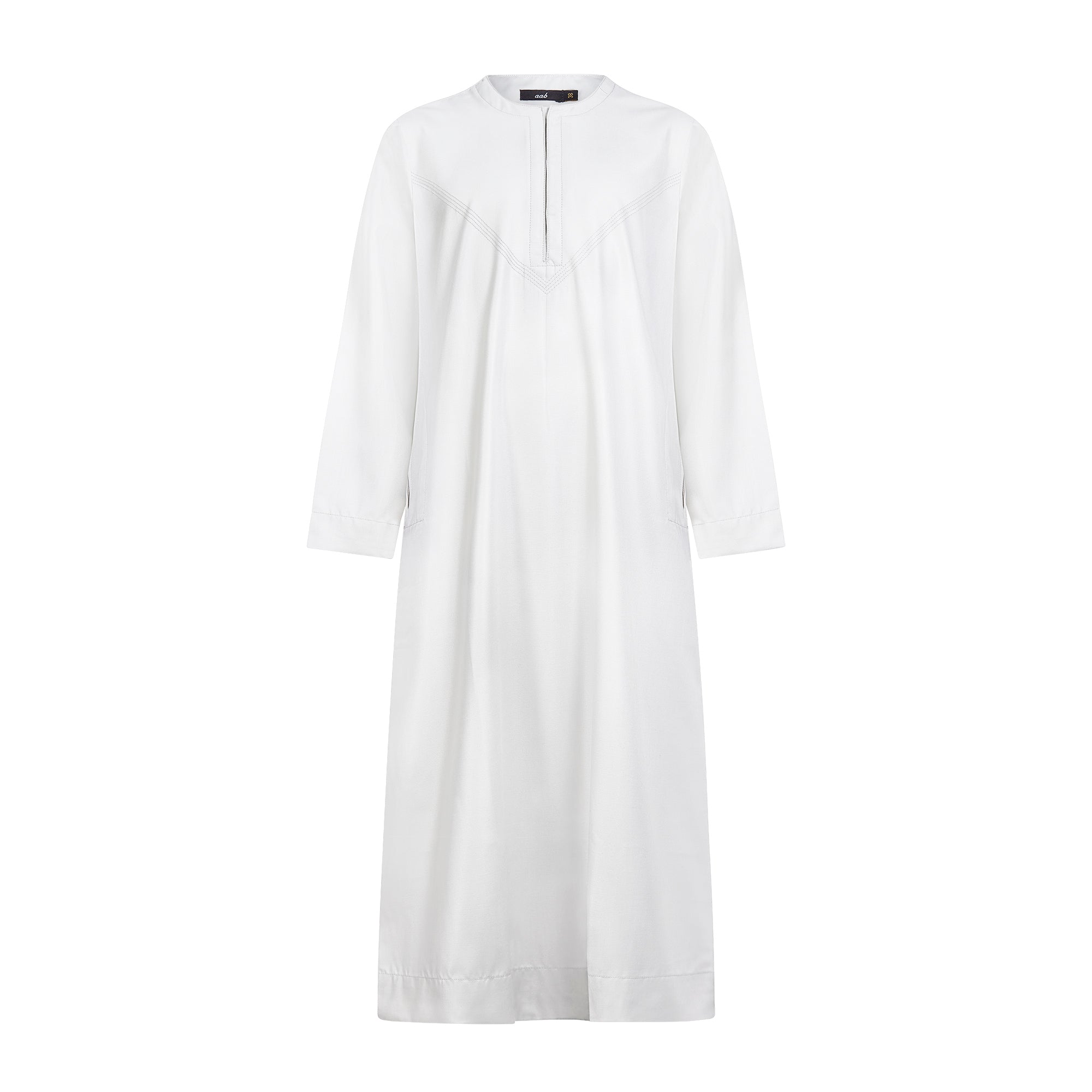 Omani Kids Thobe available in muted tones specially chosen by Aab, has a streamlined look and feel - features side pockets and concealed buttons for a comfortable feel.