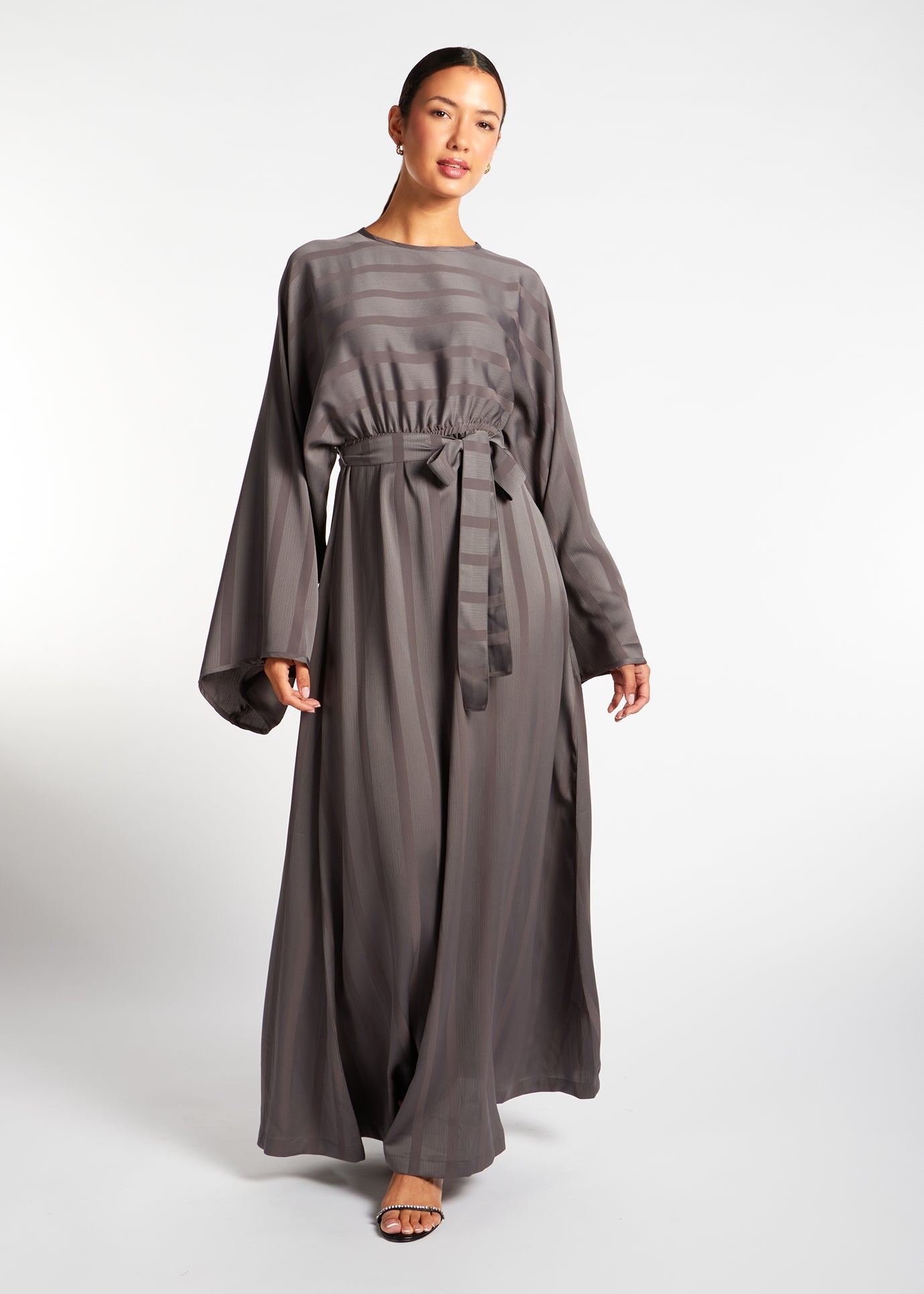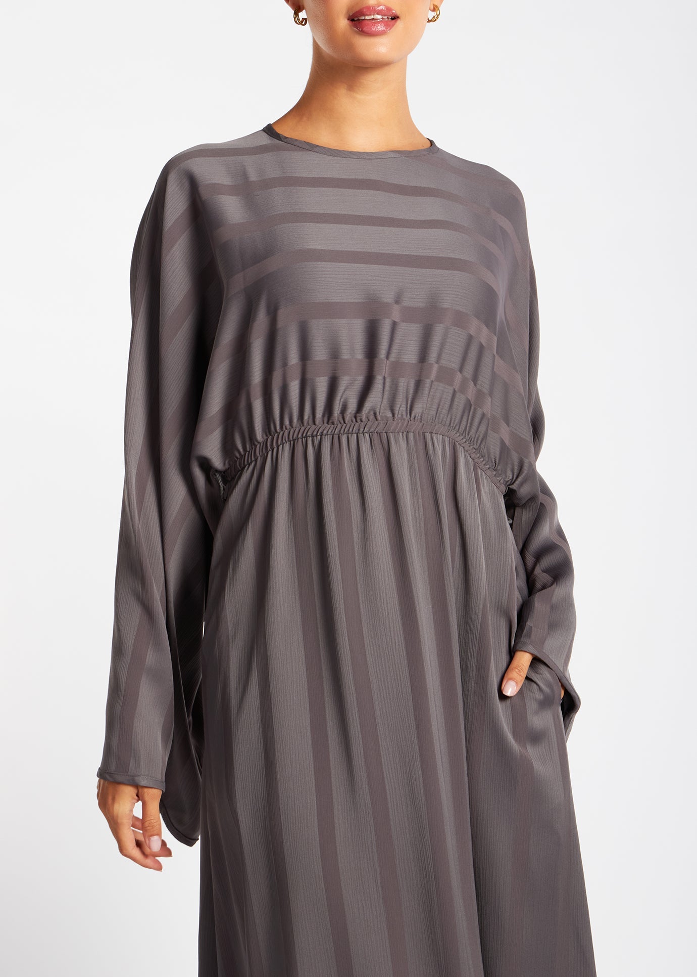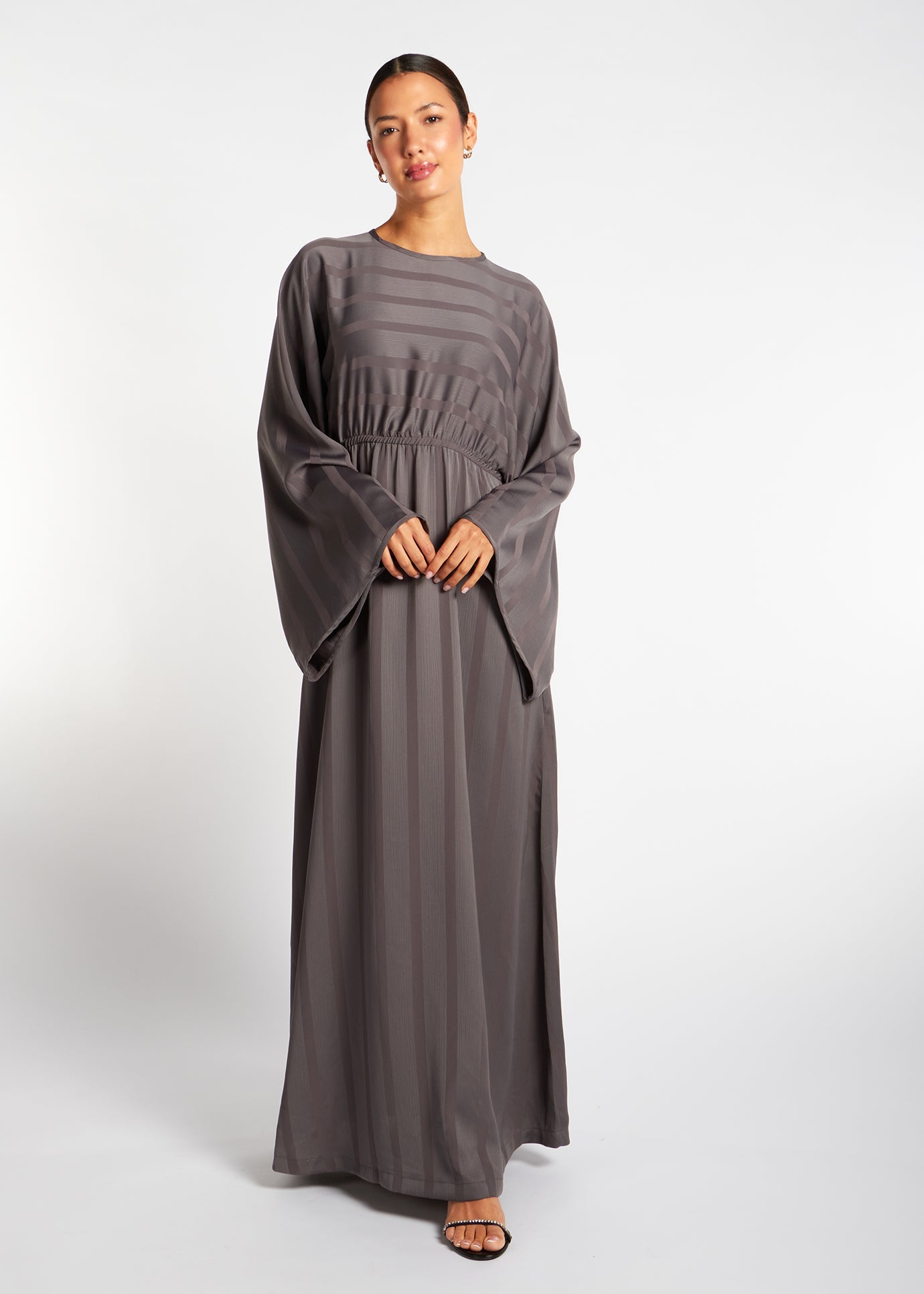 This exclusive Abaya boasts a loose, modest fit with a concealed back zip that adds a flattering touch to the fluid, free-flowing design. The exaggerated sleeves, complete with an inner button to prevent rising up, make this a perfect choice for any occasion.