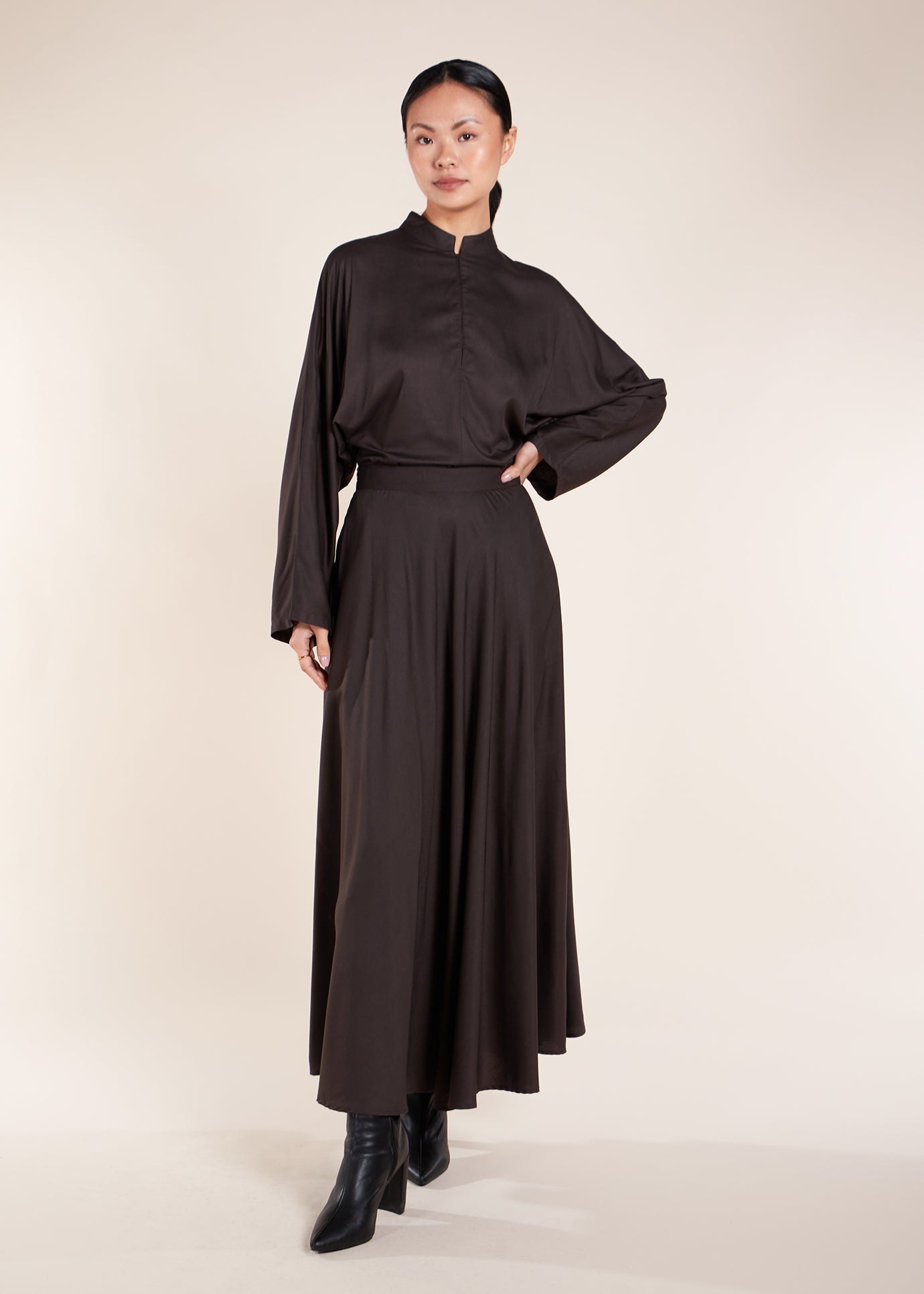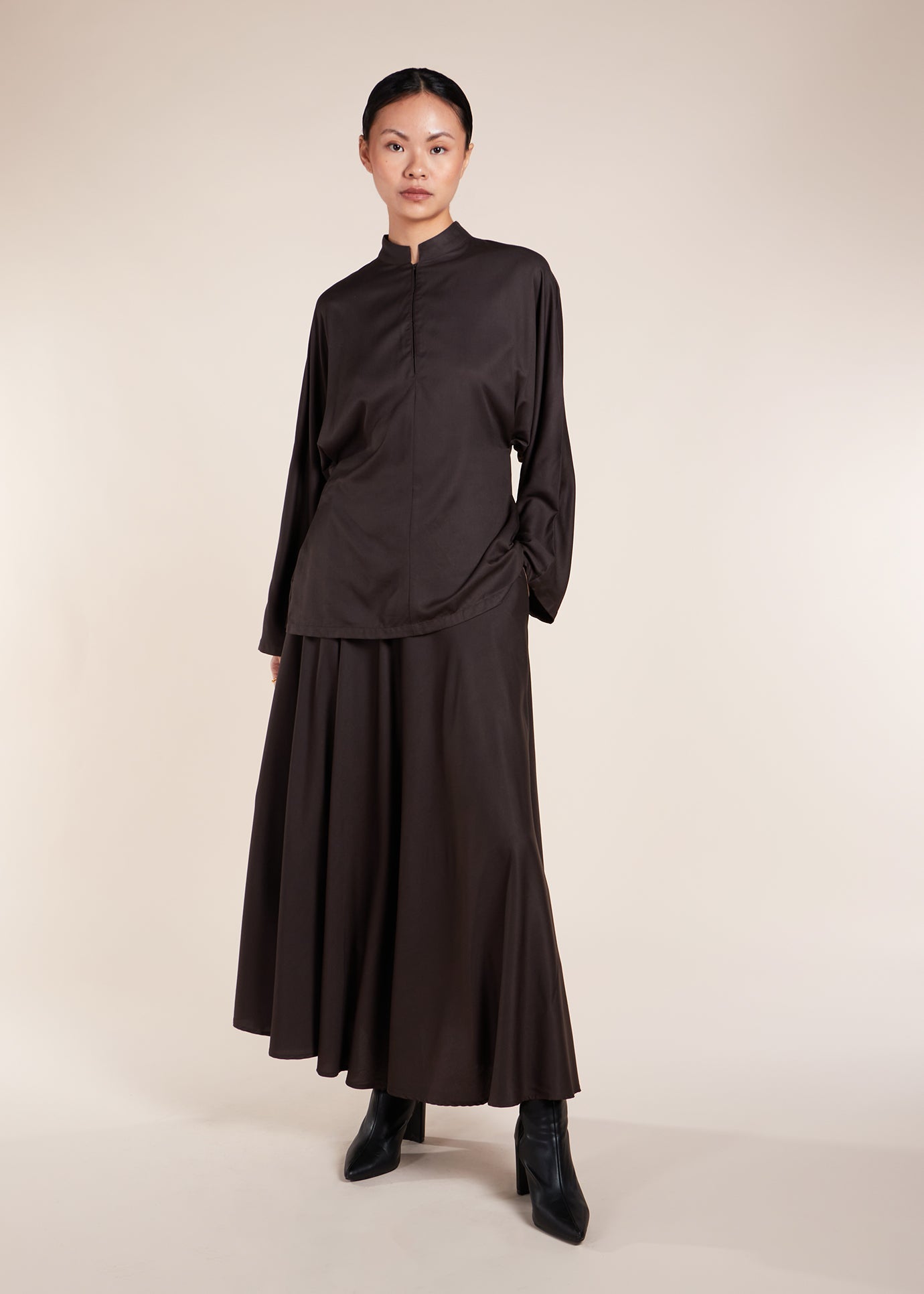 Mandarin Collar Top Charcoal