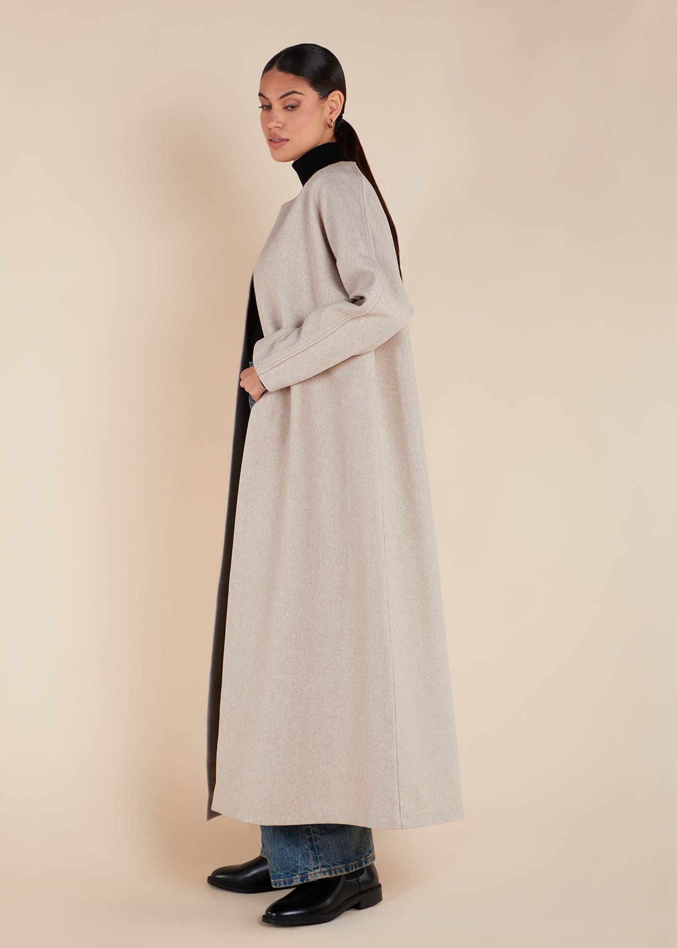 This three-quarter length cover up is expertly designed for layering without adding unnecessary bulk, providing a classic streamlined look. It's perfect for layering over your winter outfits and comes in three different colours.