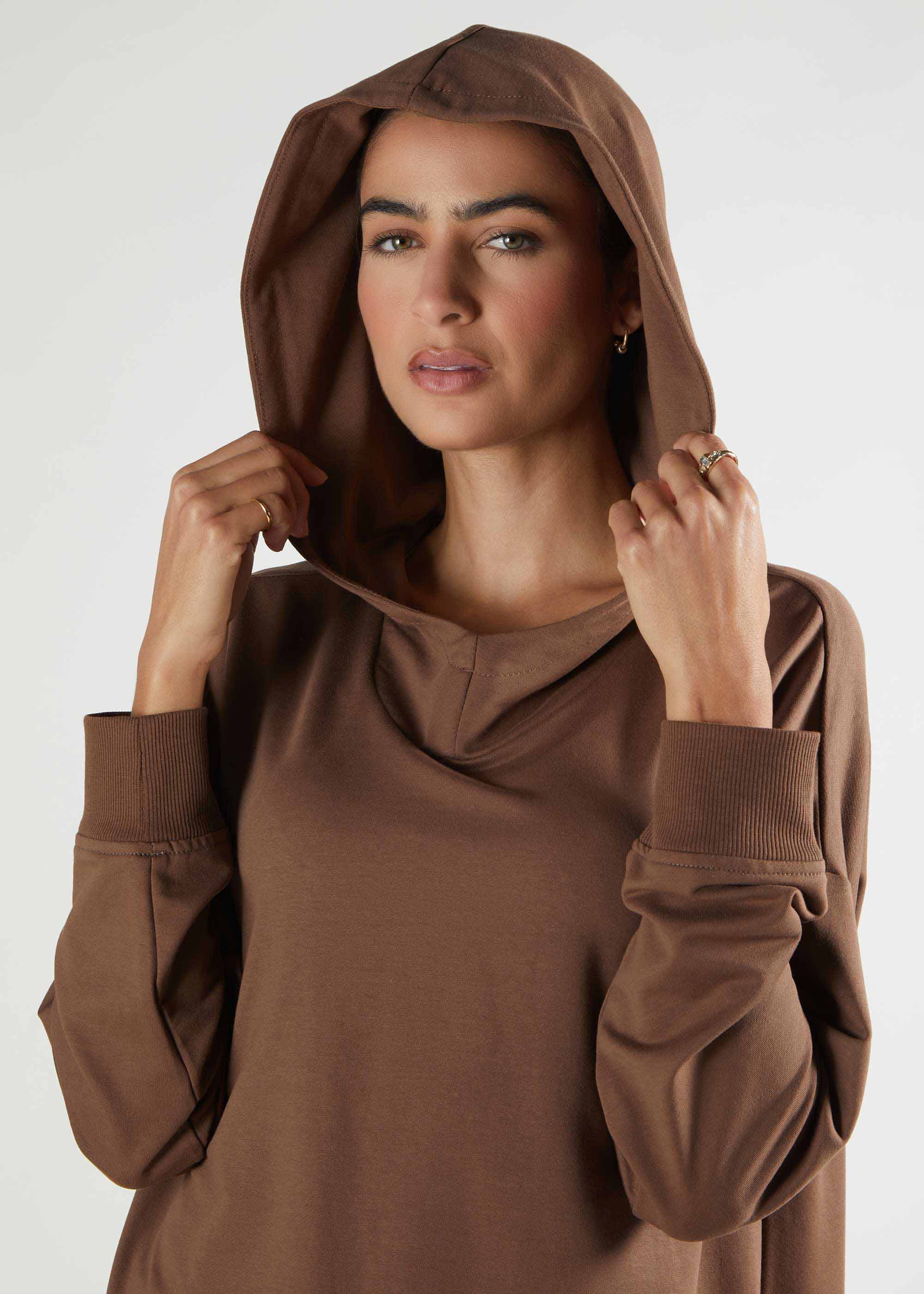 This Hoody features a long length silhouette with a modest, slightly relaxed fit that is not overly loose. It includes ribbed edges at the hem and cuffs, providing a polished finish. Designed with simplicity in mind, it has a sleek silhouette free from pockets or tassels, ideal for those who appreciate a minimal and tidy style. Offered in three distinct colours.