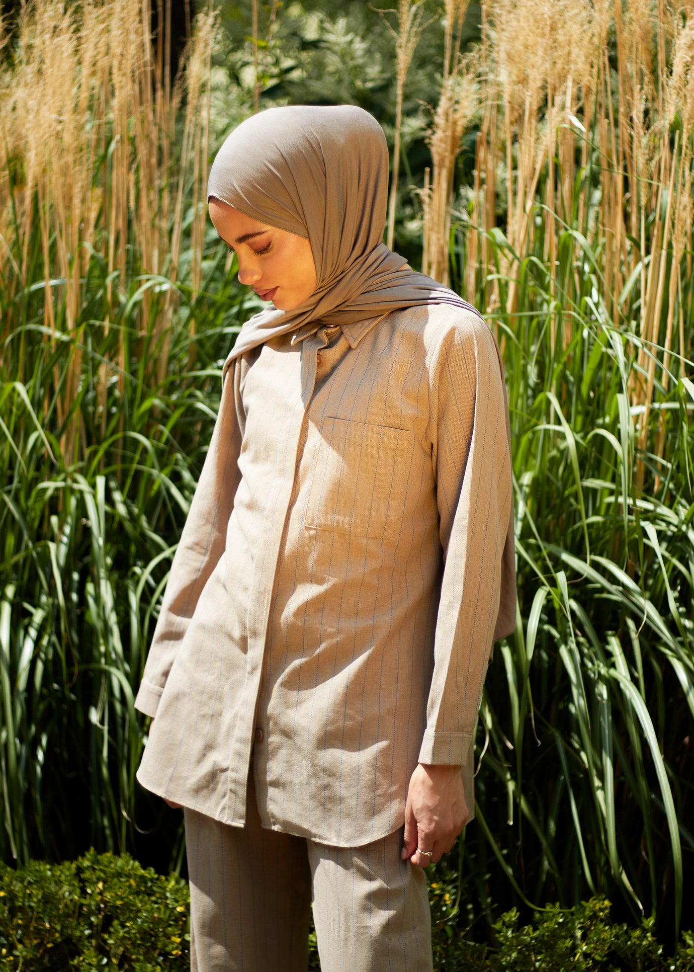 This Co-Ord Set includes a shorter length shirt paired with coordinating trousers, made from a linen-like fabric that offers the aesthetic of linen without the heavy creasing. Its lightweight construction makes it a perfect addition to your summer collection.
