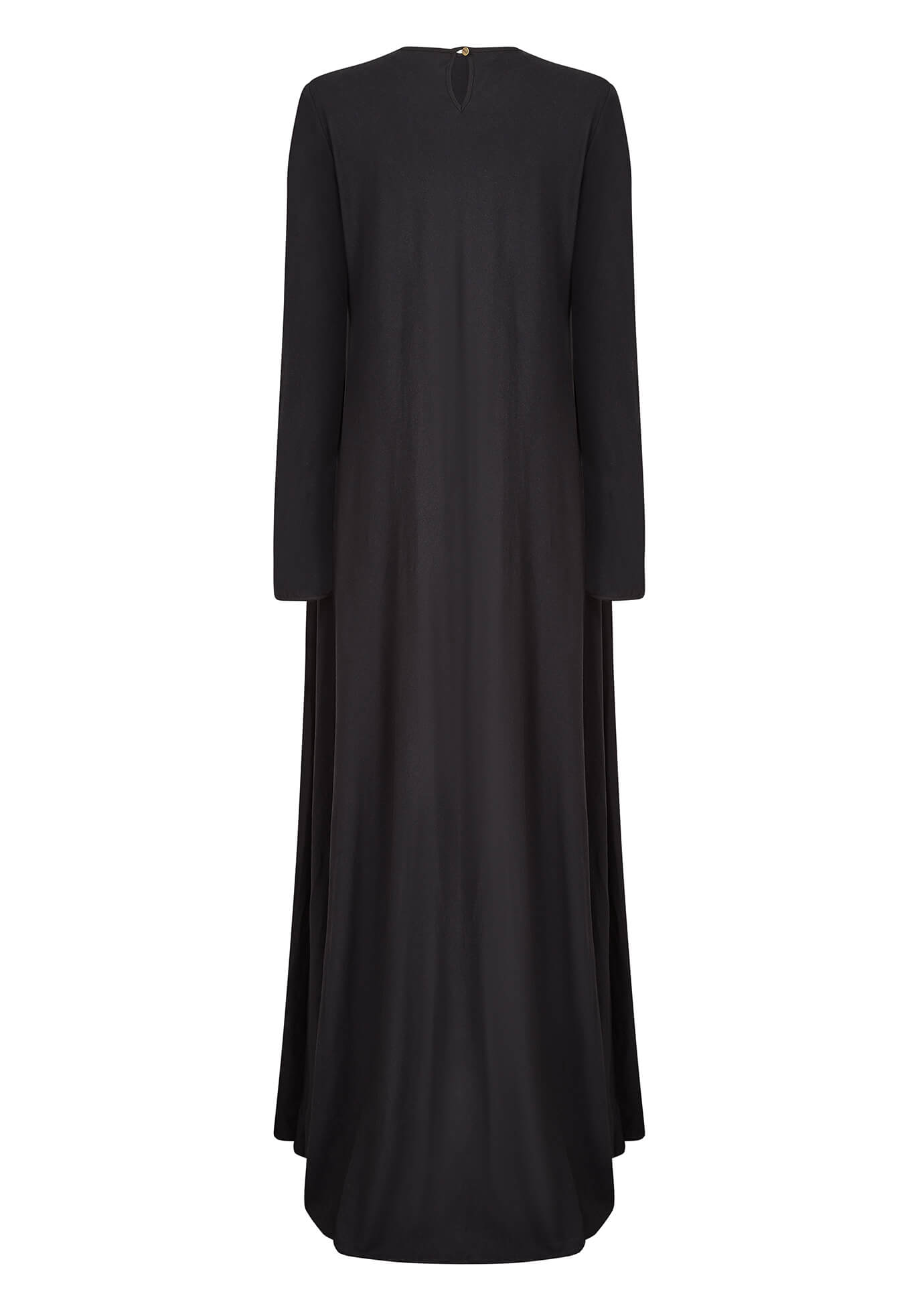Crafted from luxurious 100% cotton jersey, this elegant abaya boasts a semi-fitted bodice and a voluminous drop. The round neckline is accented with subtle pleats, while branded buttons adorn the back and sleeve cuffs for a sophisticated touch.