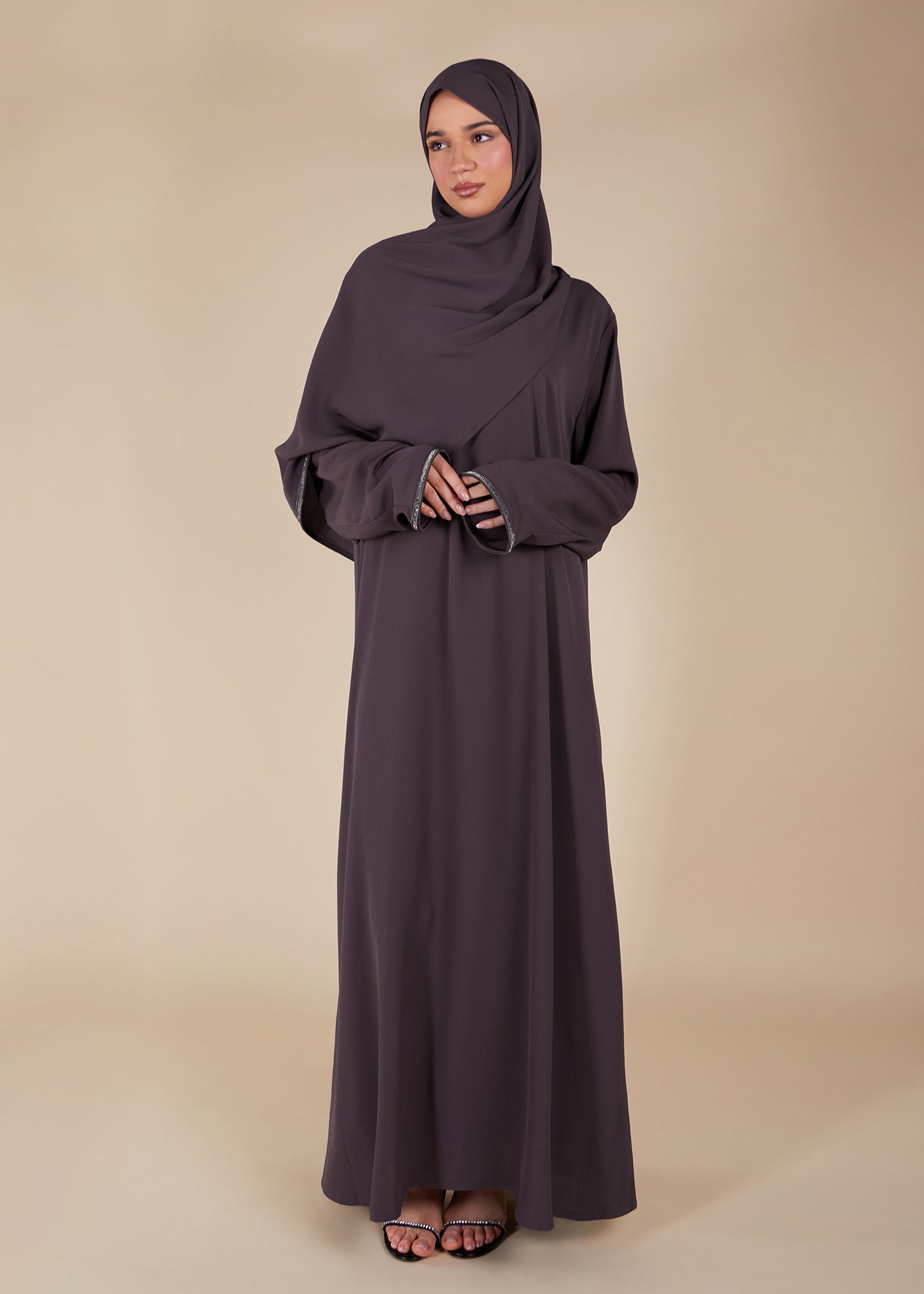 Pave Trim Abaya Mauve