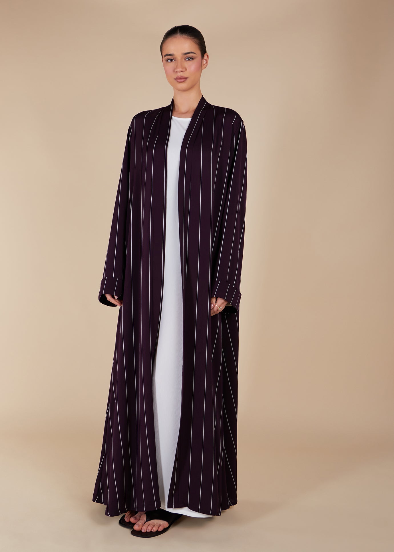 Pinstripe Plum Open Abaya - Final Sale