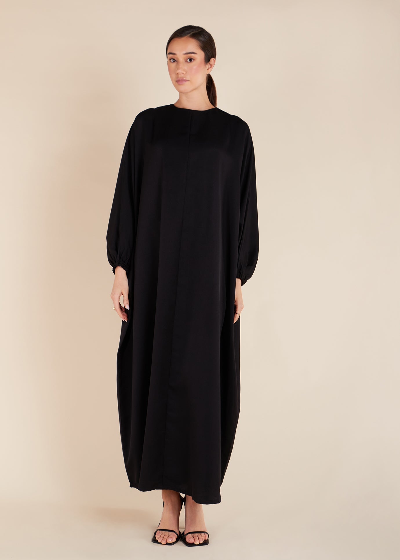 A versatile and convenient solution for nighttime prayers, our Plain Prayer Abaya Black is designed with a loose fit and made from a fluid fabric. Easily fold and store it in your bag, ready to be worn at prayer time. For maximum modesty, it can also be worn as an oversized abaya.