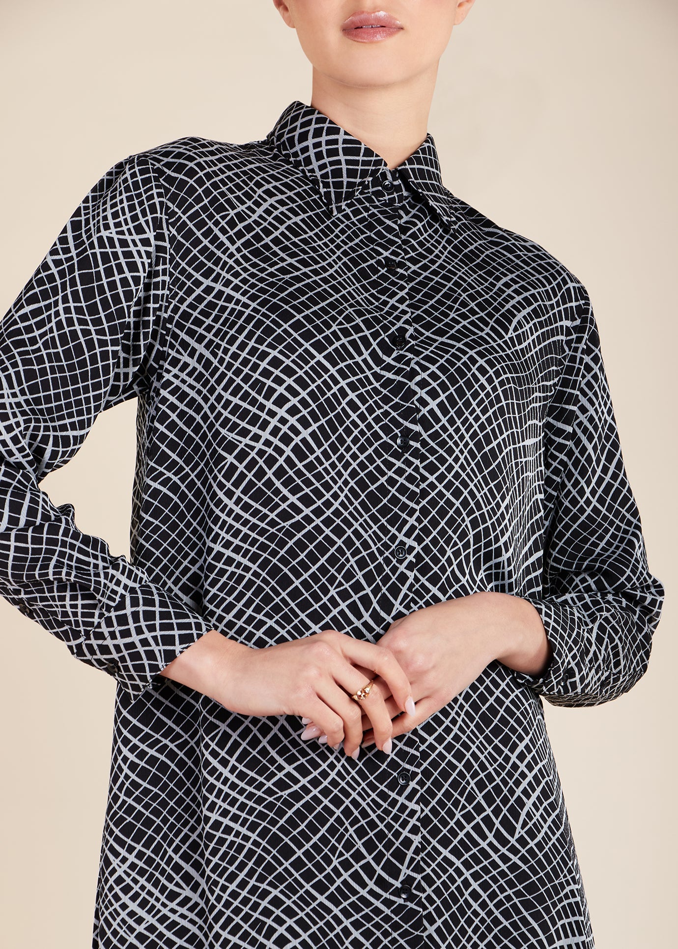 This Monochrome Print Maxi is fully lined and features a classic A-line cut, standard collars, and functional side pockets. It also comes with an optional belt, or you can style it with your own.