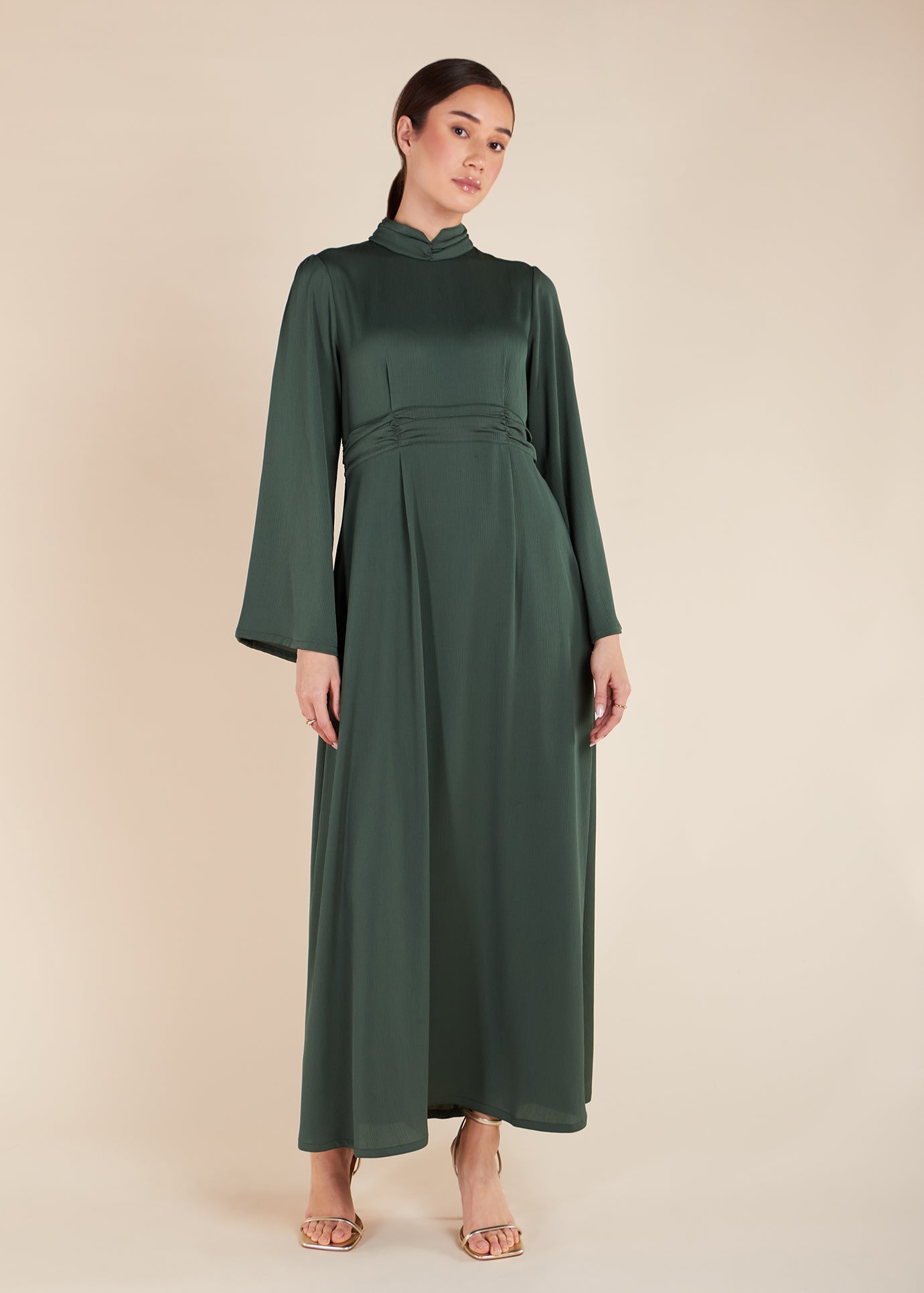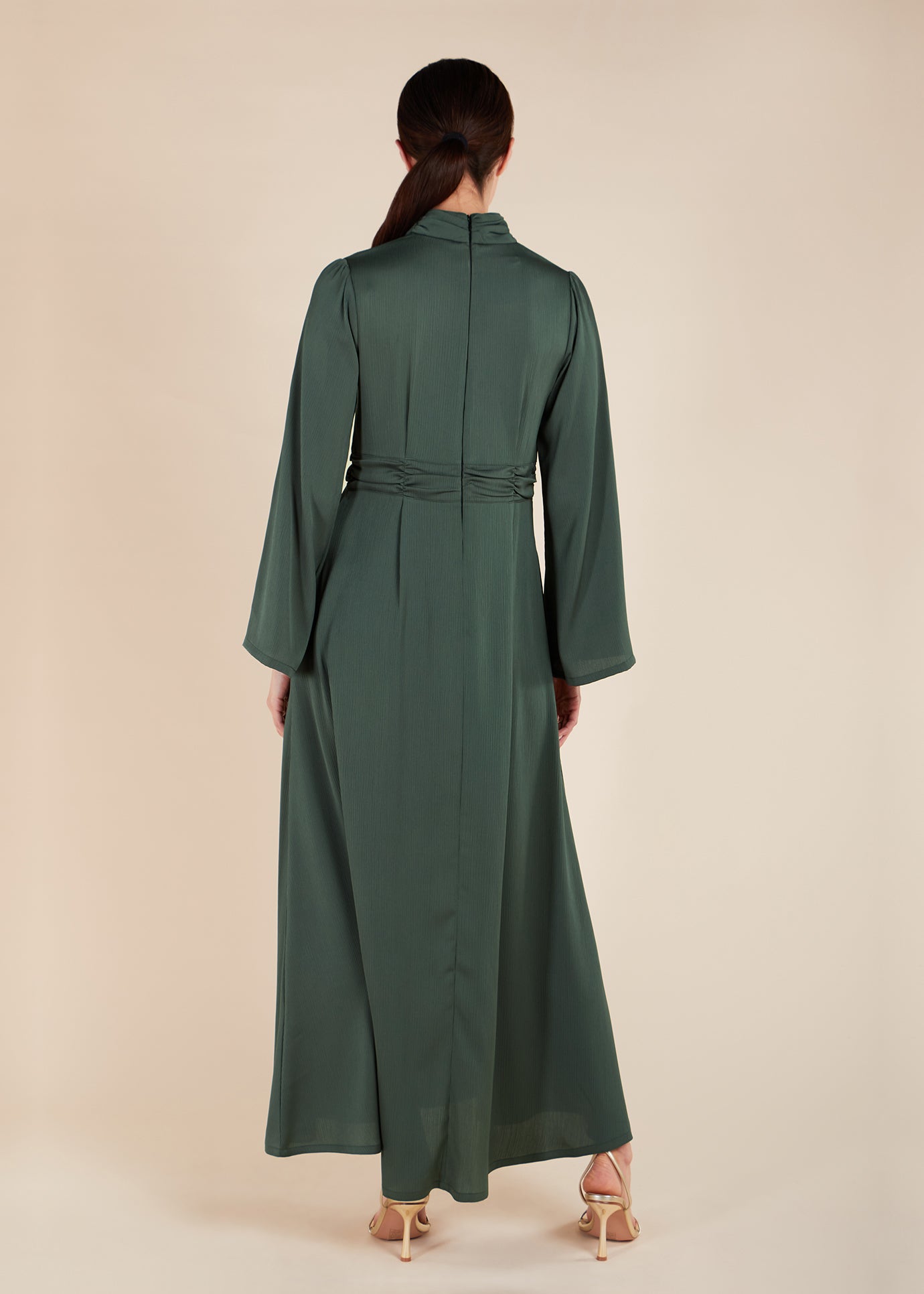 The waist and neckline pleats provide a flattering, fit-and-flare silhouette for an elegant look. Made of a lightweight, wrinkle-resistant fabric, this abaya is perfect for special occasions and easy to layer without bulk.