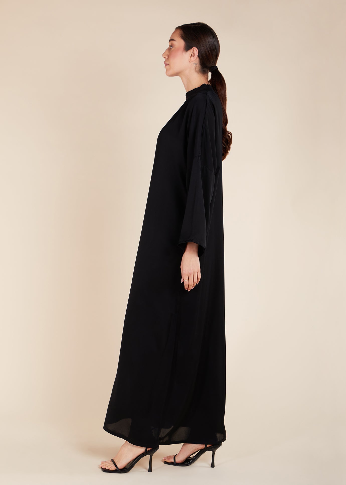 Made from a wrinkle-resistant Nida fabric, this kaftan features a fluid, loose fit with a subtle soft ribbing on the neckline and wide sleeves. Ideal for both prayer and everyday wear, its versatile design is both practical and stylish.