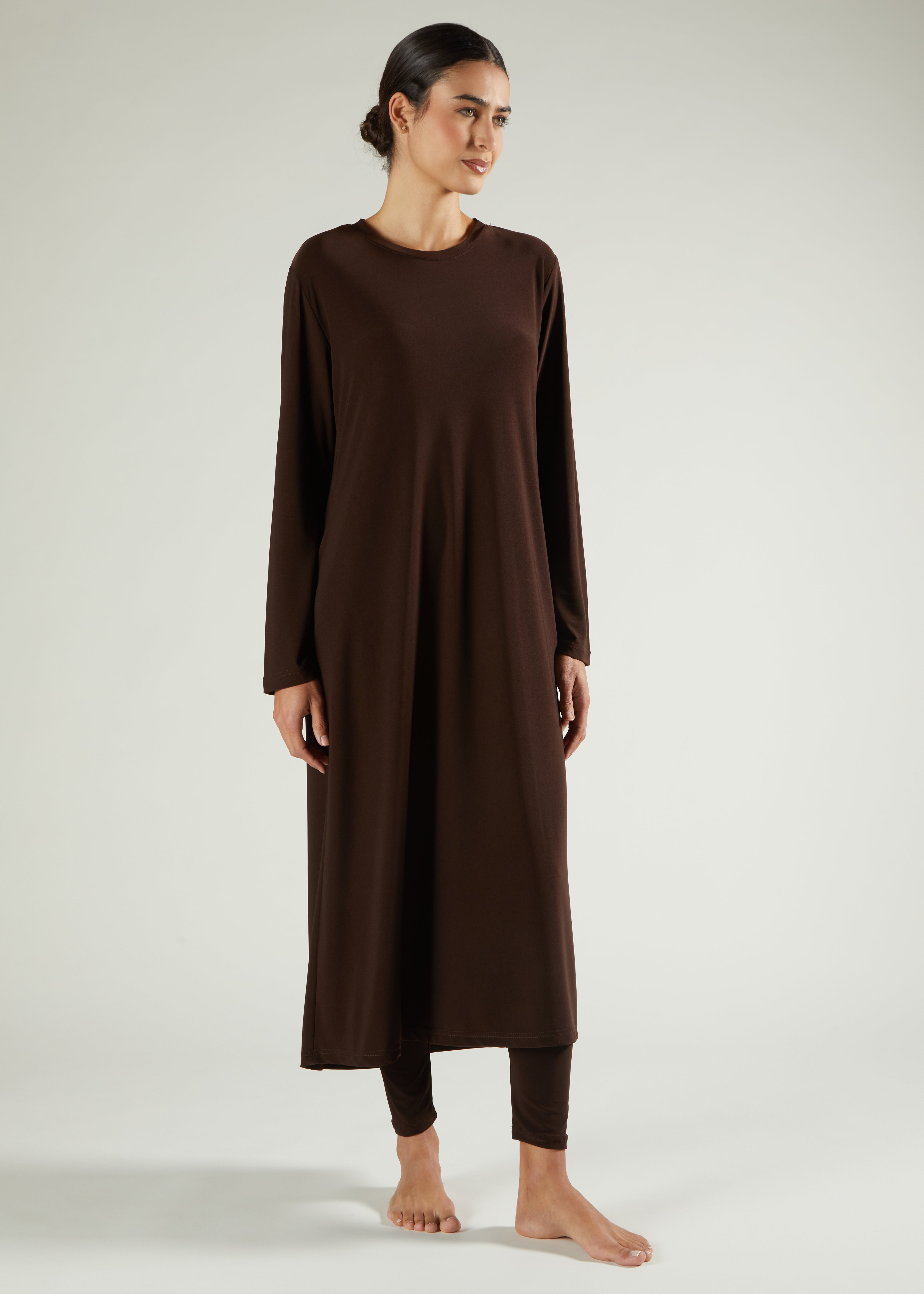 The Second Skin collection is designed to feel like an extension of your own skin. These slips are expertly designed to reduce transparency beneath sheer clothing, with a fluid, lightweight fabric that ensures comfort and easy maintenance. Available in sleeveless and full-sleeve styles, along with tops and leggings, this range offers complete coverage for confidence and peace of mind. Select from seven shades.