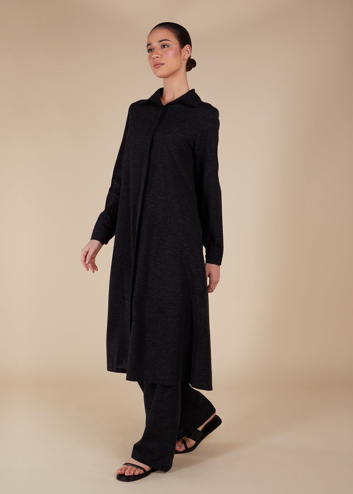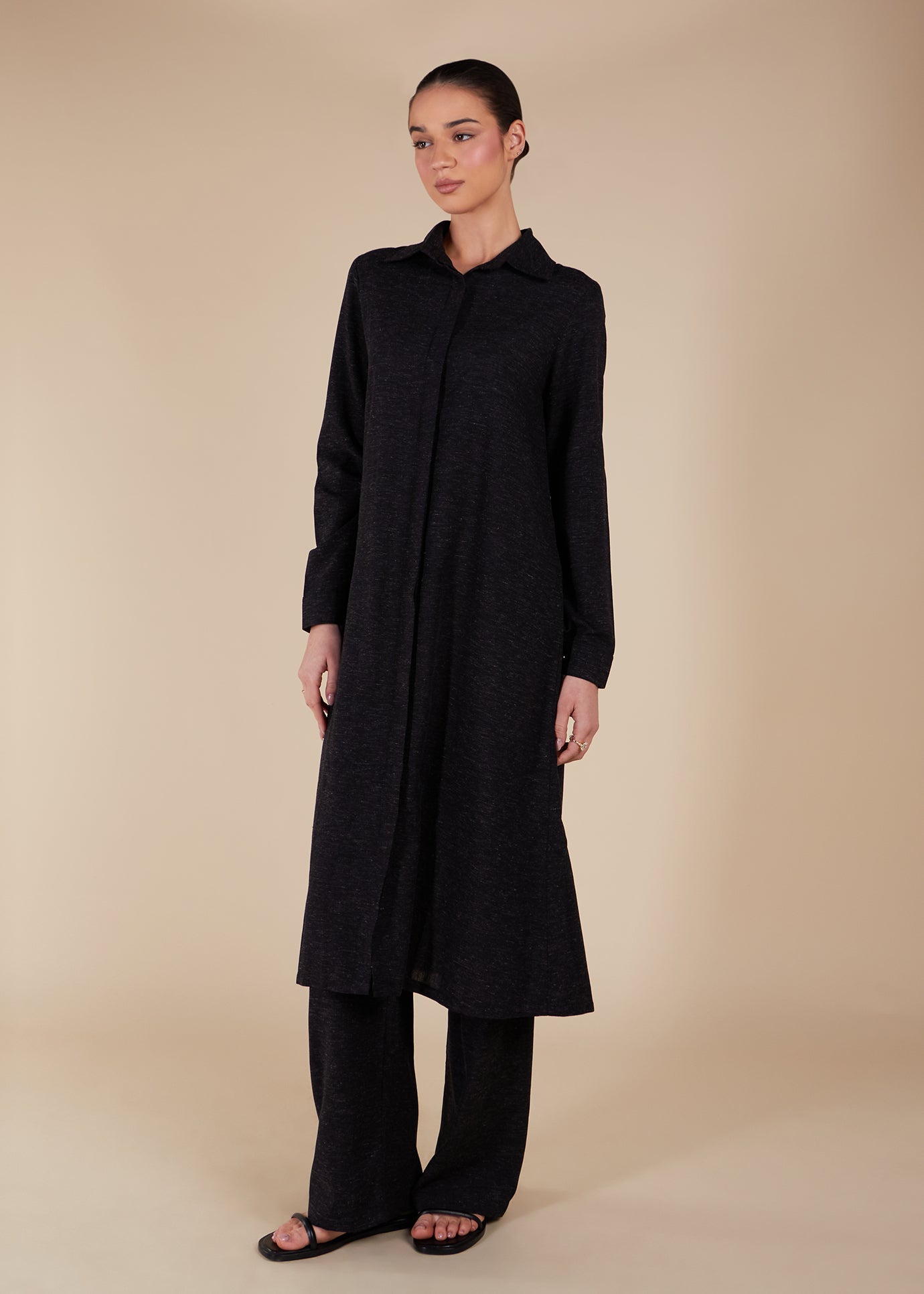 This co-ord set includes a three-quarter length shirt dress and loose fit trousers, designed for easy wear with minimal ironing needed. Ideal for your Spring/Summer wardrobe, this versatile set is perfect for both casual vacation wear and smart office attire. Available in four colours, it features concealed front buttons and cuffed sleeves.