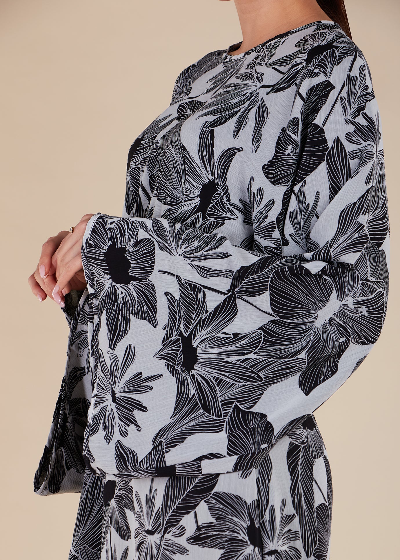 The Shodo Maxi Dress features a Japanese-inspired print and a monochrome colour scheme. Its flowy design is complemented by a fully lined interior, wide sleeves with an inner button to keep them in place, and a detachable belt for versatile styling options.
