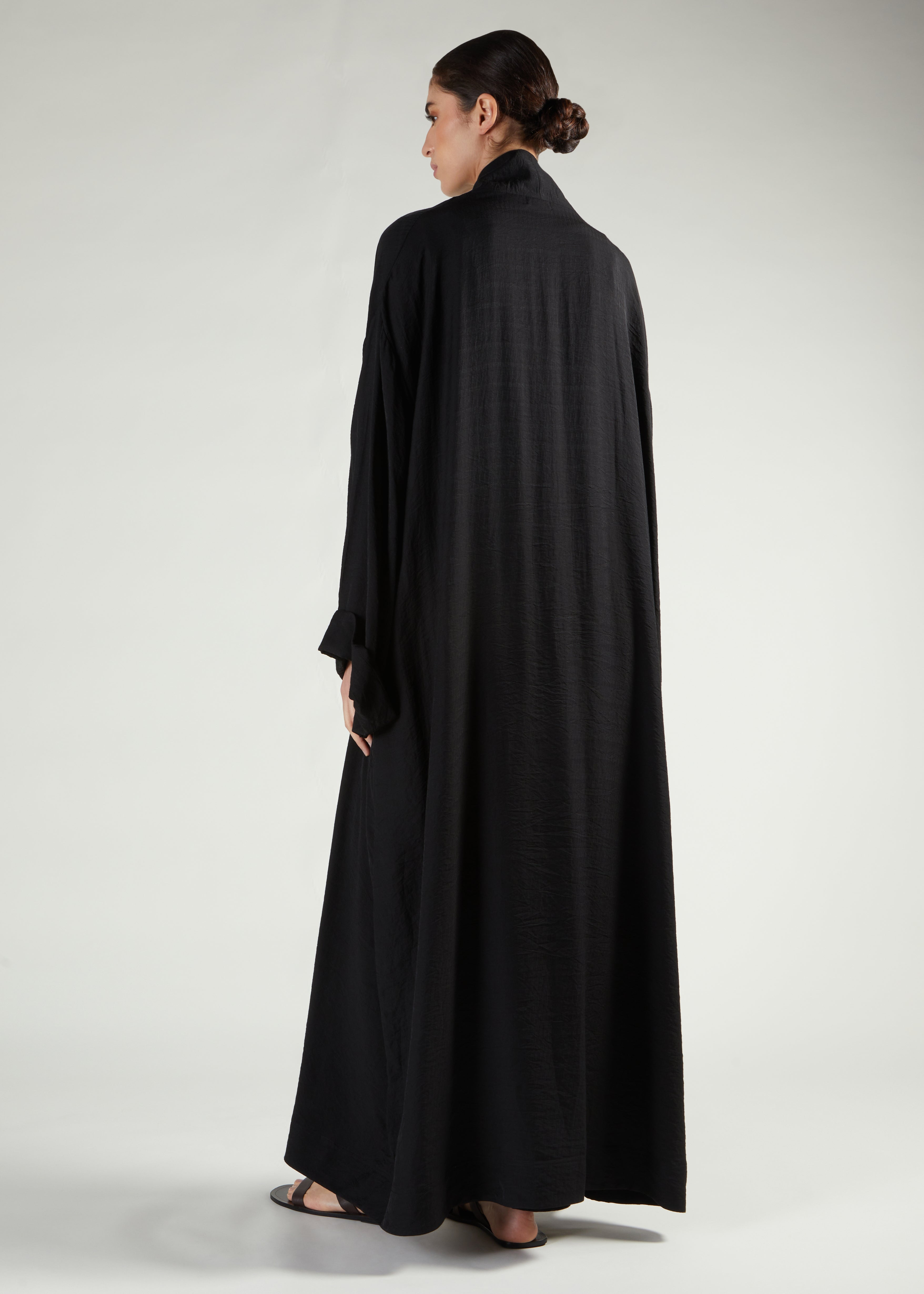 This open abaya features a textured fabric that's soft and light, draping beautifully with every movement. The fluid design creates an elegant silhouette that's comfortable to wear all day. Style it with the matching slip underneath for a complete, polished look.