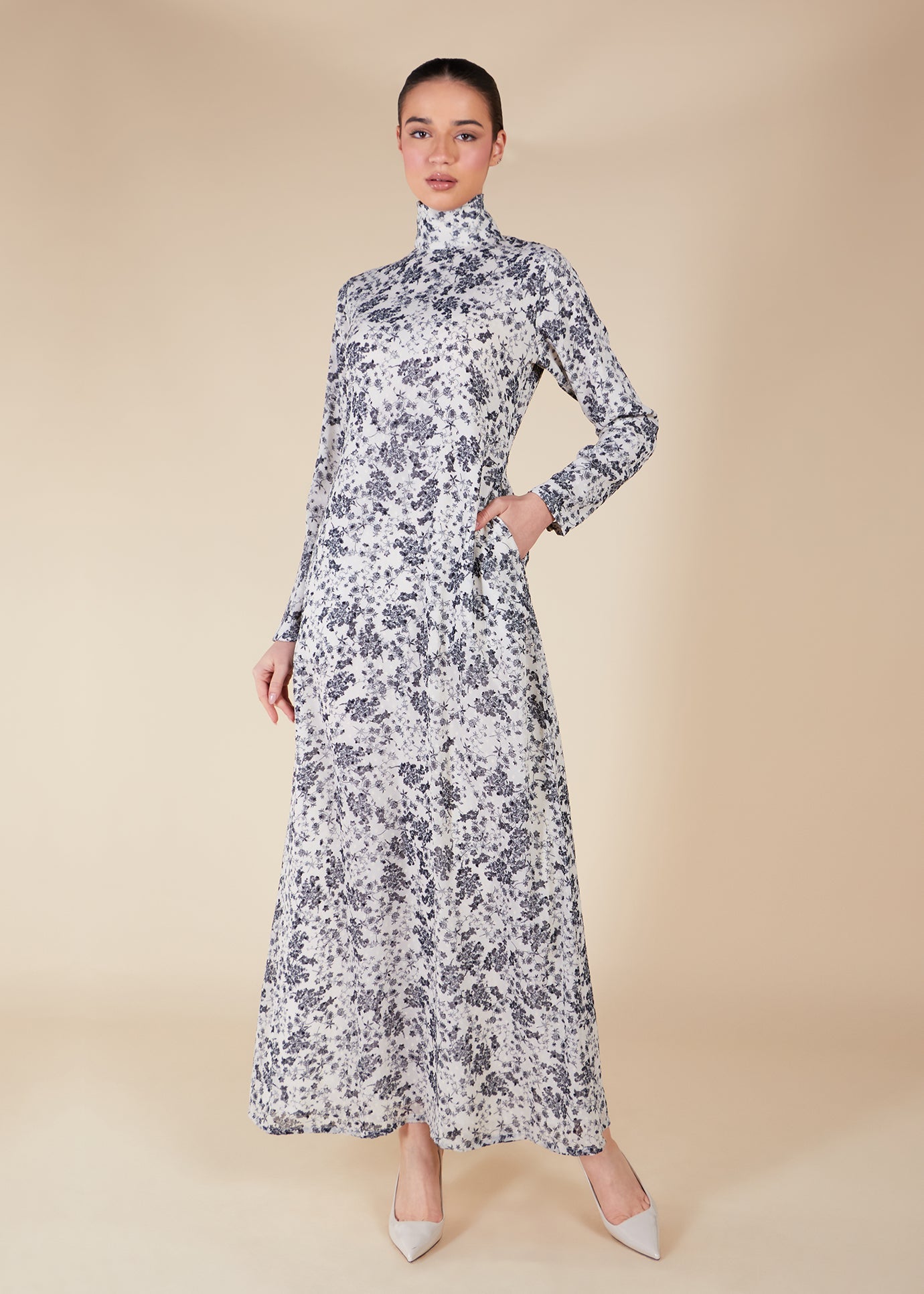 The Toile Maxi features a Romantic Toile De Jour Style print in soft, monochrome tones. The maxi has a slim, true-to-size fit, but can be snug. For a looser fit, consider sizing up. There is a zip opening at the back and a high neck for maximum modesty.