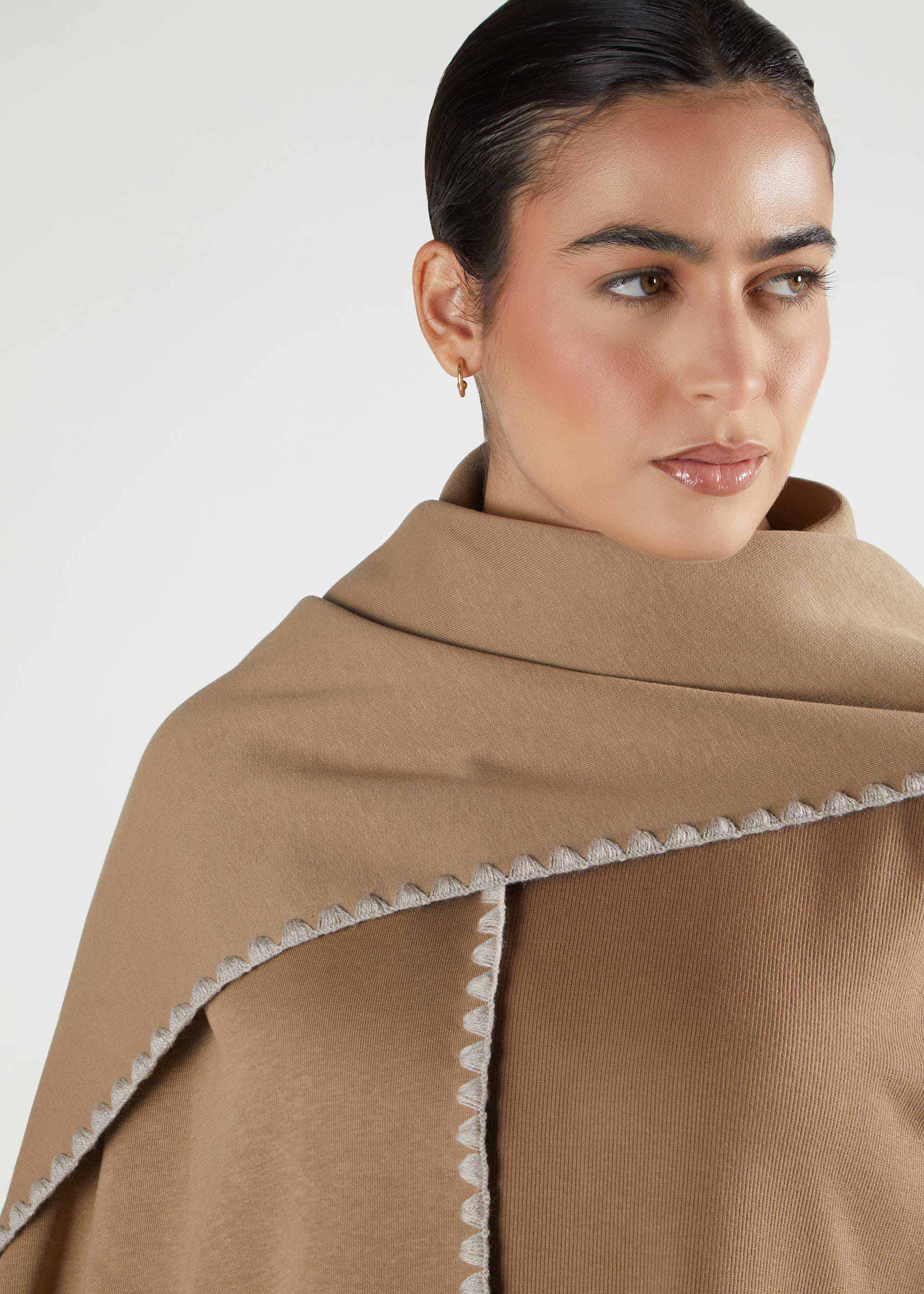 This soft scarf is detailed with a traditional embroidered stitch along the edges throughout. Lightweight yet warm, it’s ideal for complementing outerwear or adding layers to your outfit. Offered in three distinct colours.