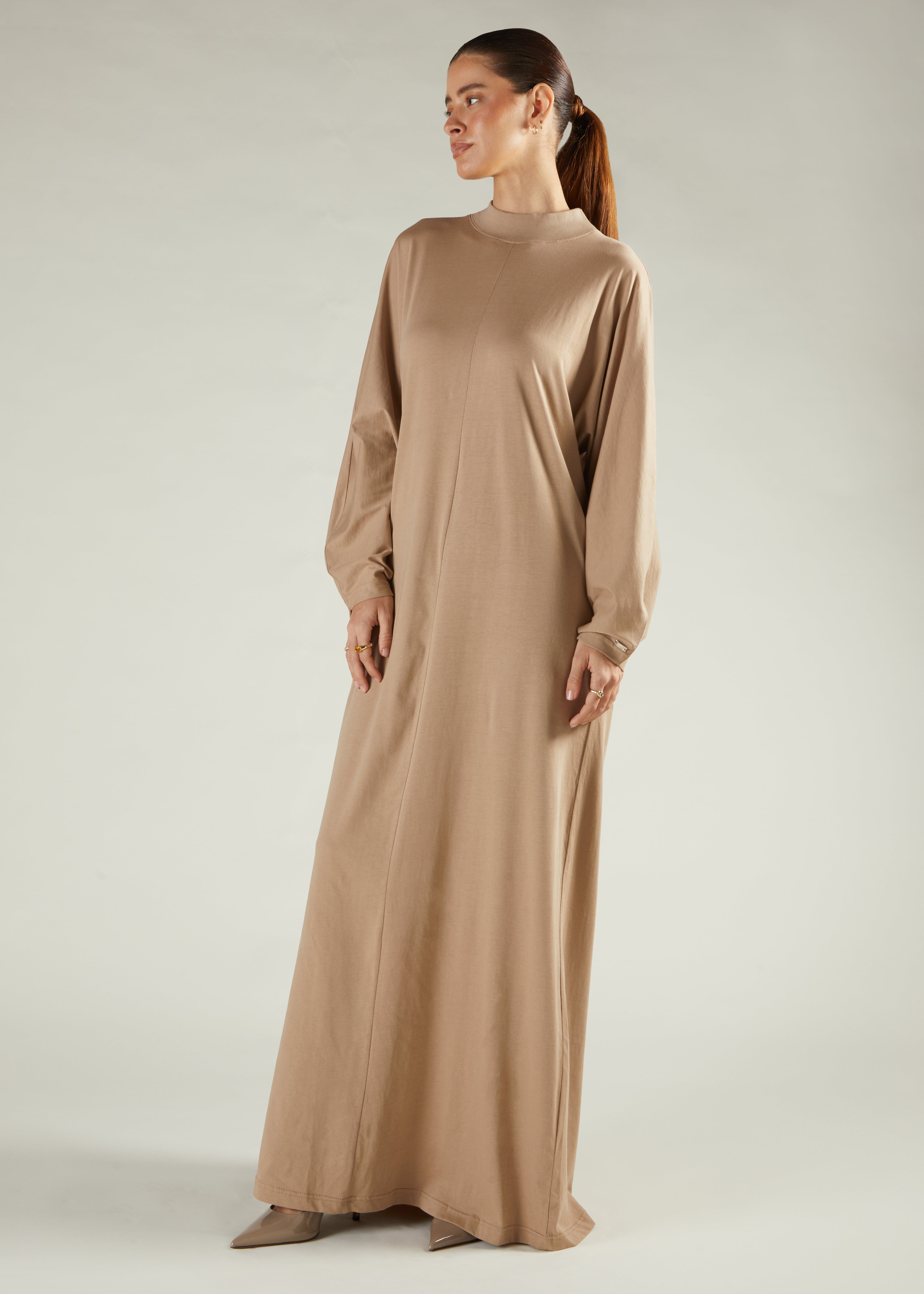 Featuring a sleek turtle neckline and a flattering A-line cut, these pieces are crafted from luxurious 100% cotton jersey. The lightweight, skin-friendly fabric is perfect for layering during the cooler months.