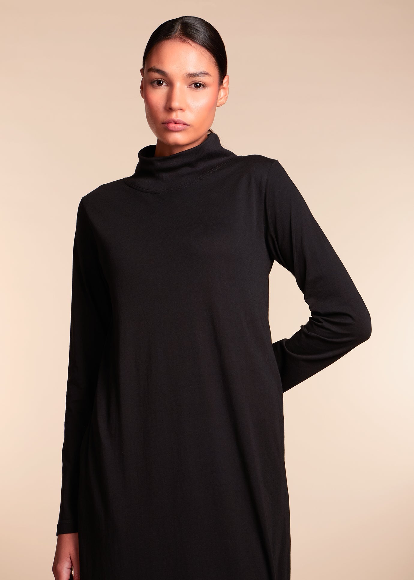 Discover our full-length maxis, offered in a variety of sizes and lengths. Featuring a sleek turtle neckline and a flattering A-line cut, these pieces are crafted from luxurious 100% cotton jersey. The lightweight, skin-friendly fabric is perfect for layering during the cooler months.