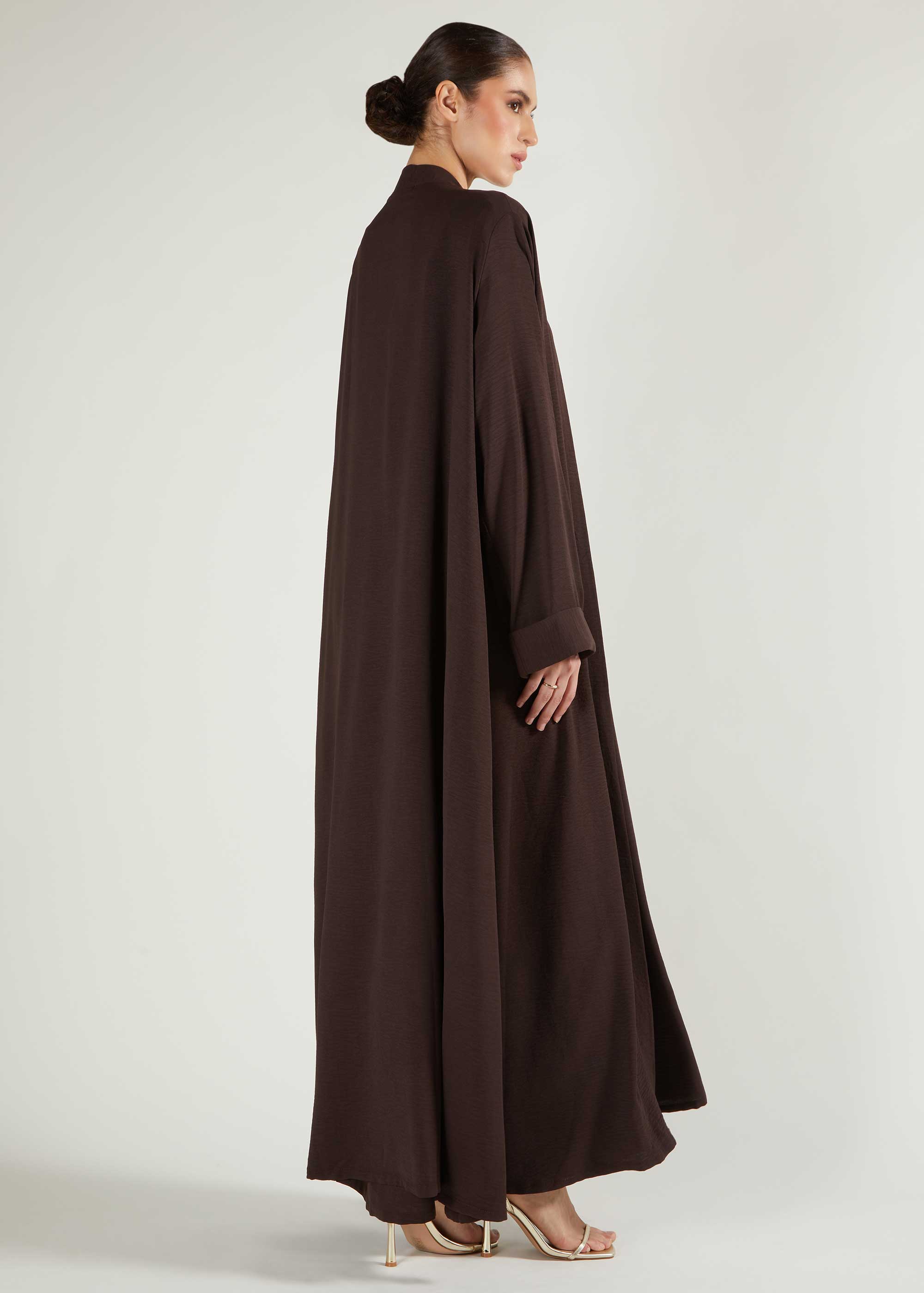 This elegant Two-Piece Open Abaya set includes a Full Sleeve matching slip. Perfect for everyday wear, it can also be dressed up with accessories for an evening look. The full sleeve slip dress can be worn as a maxi dress on its own or paired with the open abaya for a stylish ensemble.