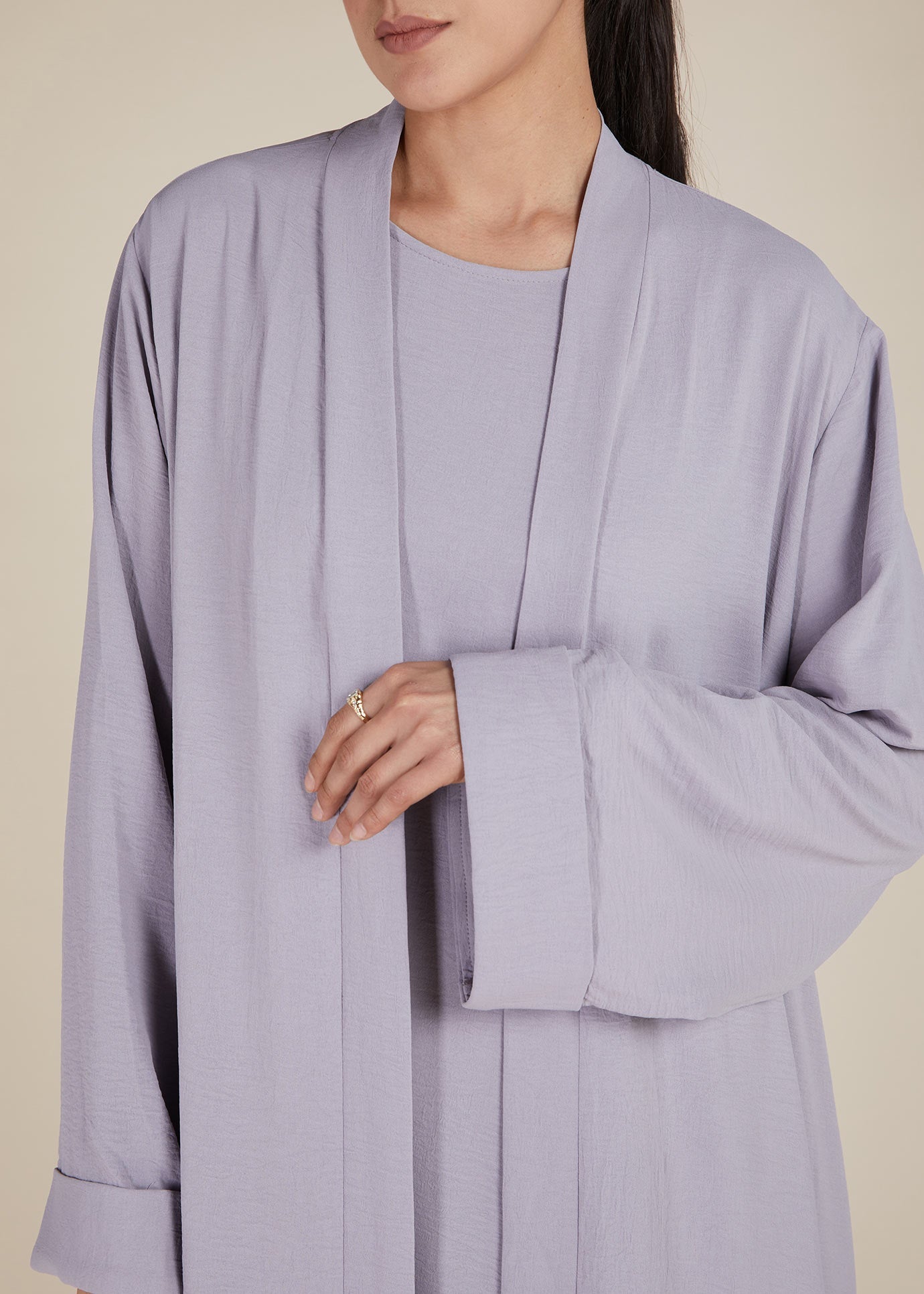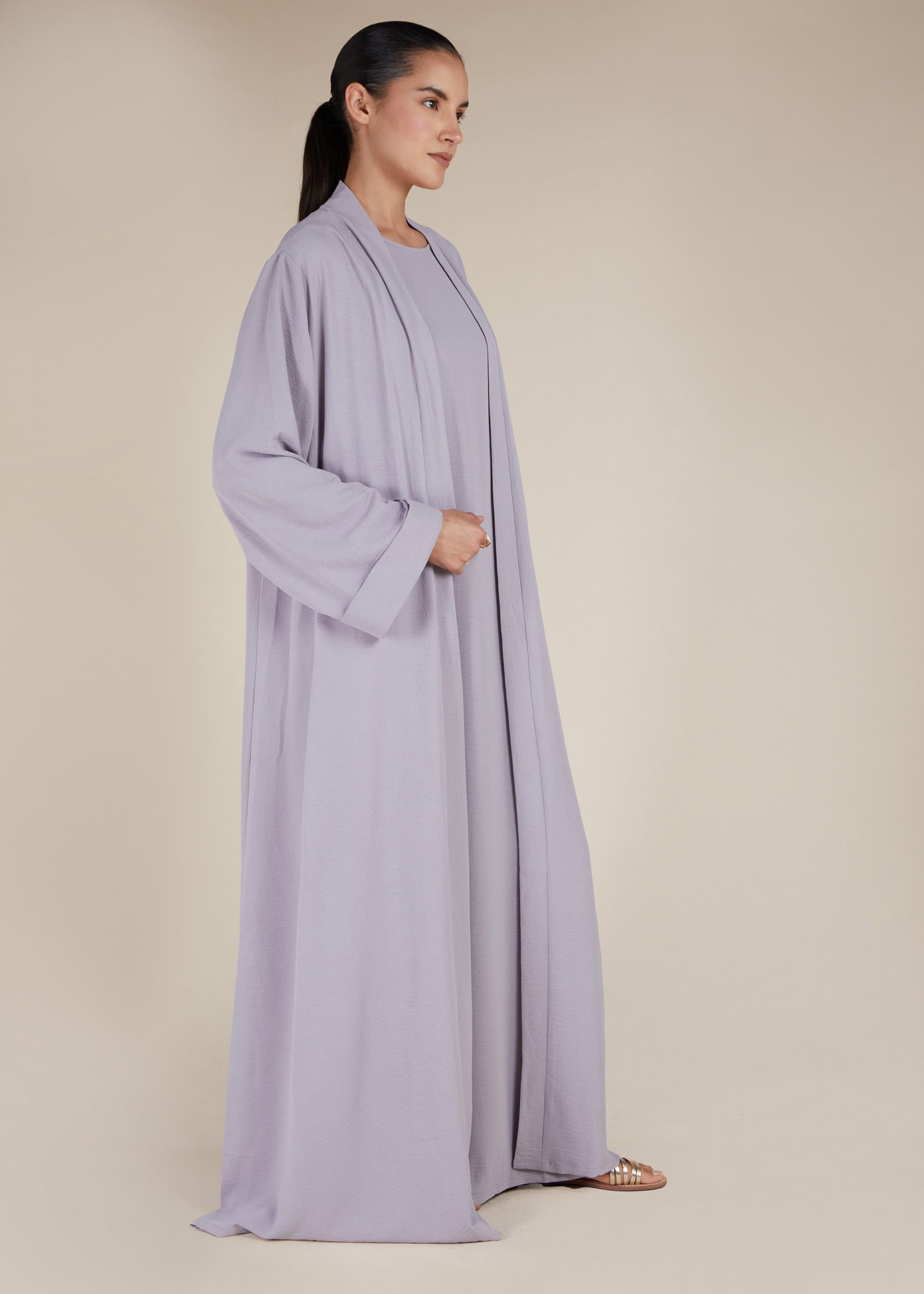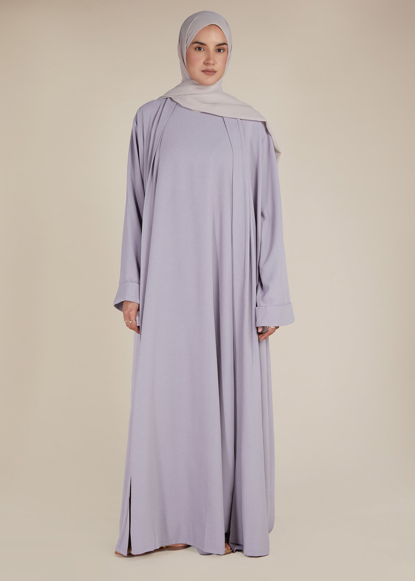 Two Piece Open Abaya With Slip Lilac