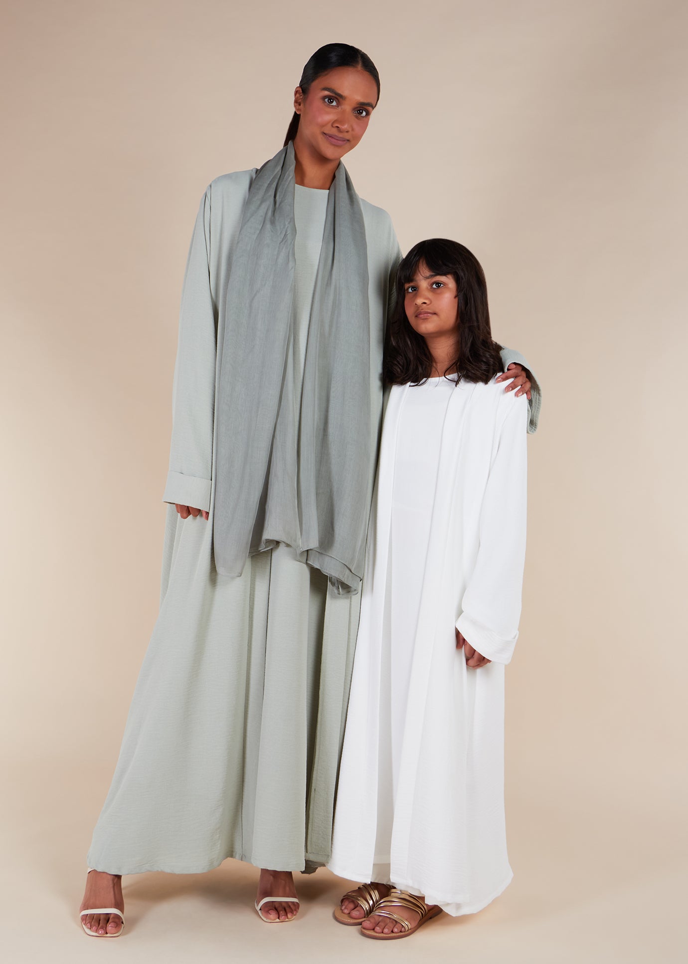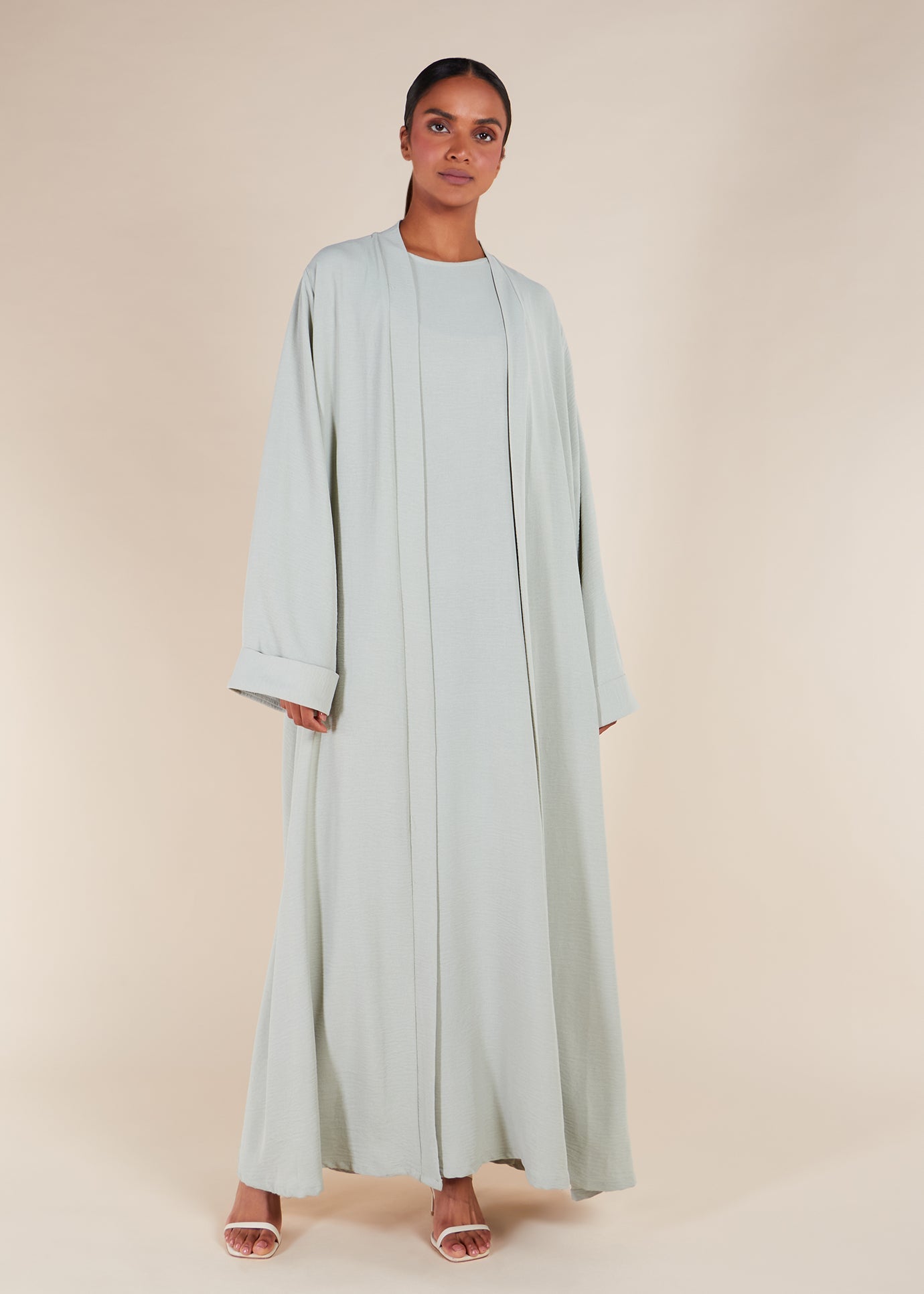 Two Piece Open Abaya With Slip Mint