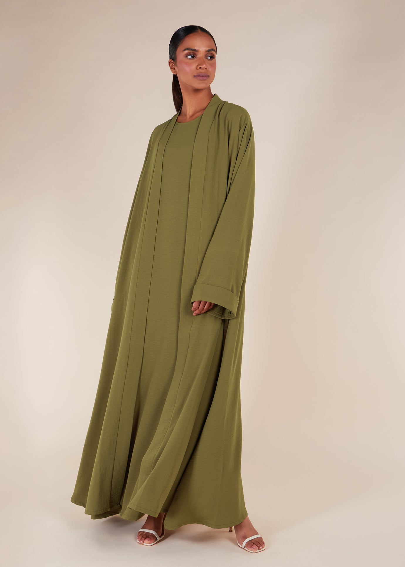 Two Piece Open Abaya With Slip Olive Green