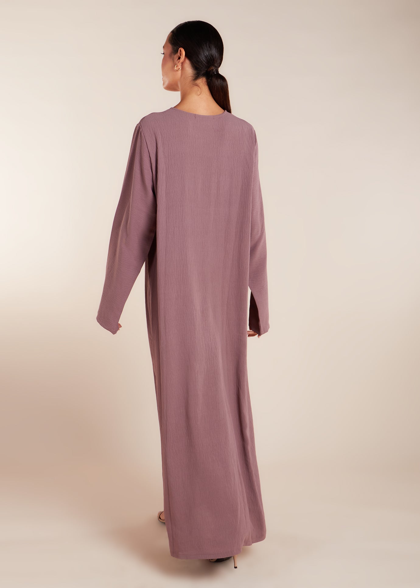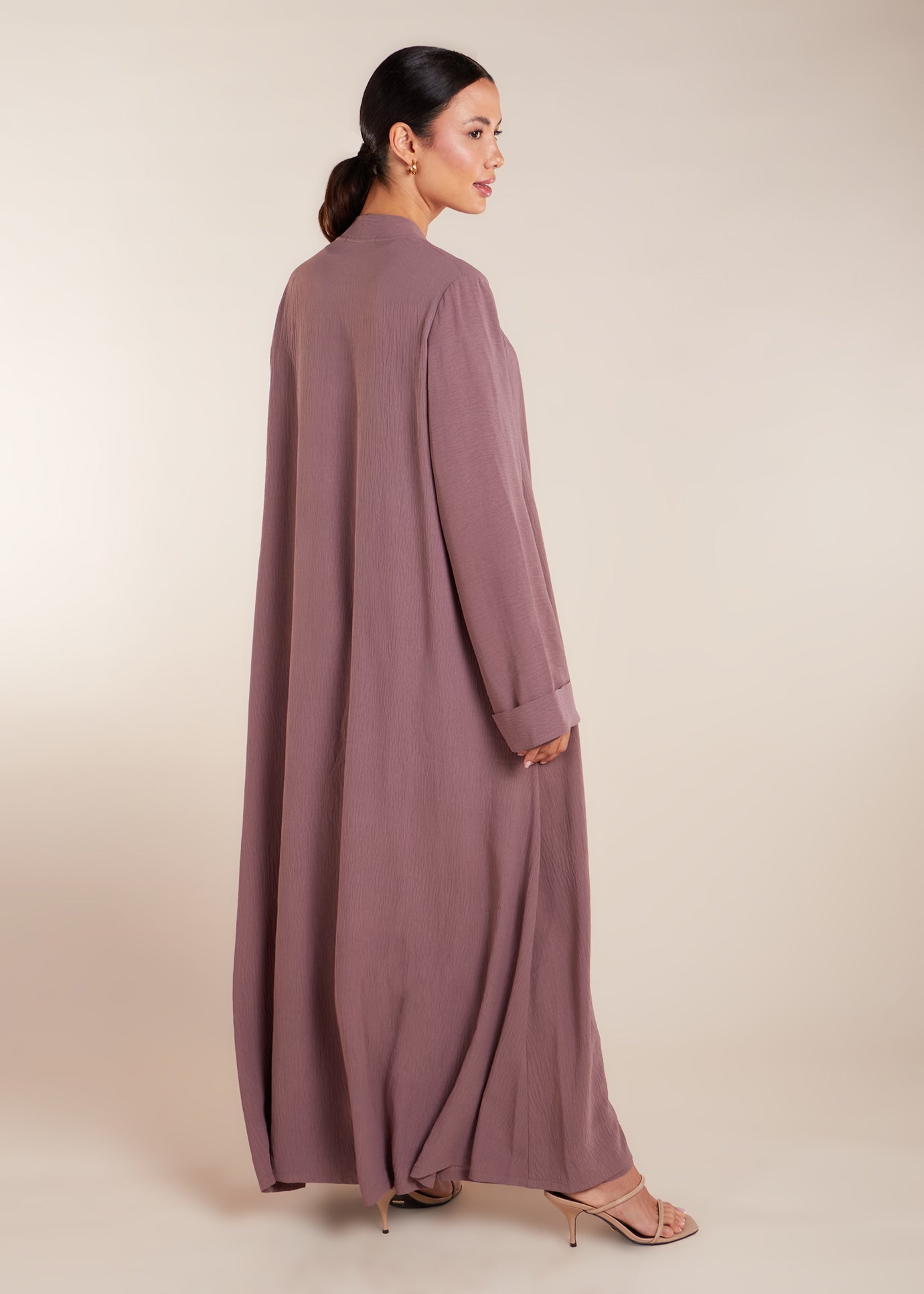 This elegant Two-Piece Open Abaya set includes a Full Sleeve matching slip. Perfect for everyday wear, it can also be dressed up with accessories for an evening look. The full sleeve slip dress can be worn as a maxi dress on its own or paired with the open abaya for a stylish ensemble.