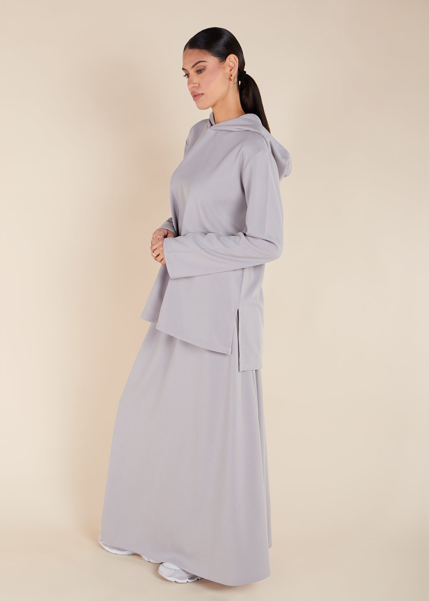 Designed with a waffle-like texture, this co-ord set offers both comfort and breathability with its relaxed, modest fit. Ideal for layering during the season, it is offered in two colour options.