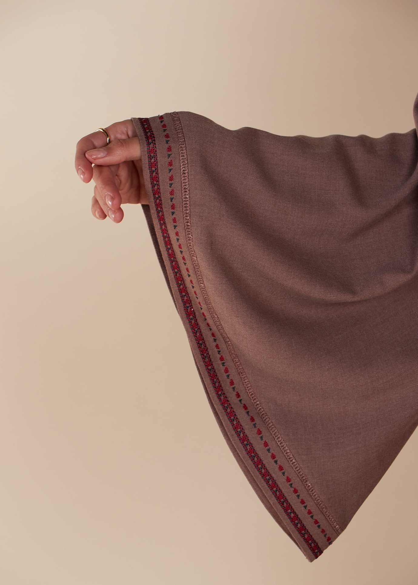 This Warda Open Abaya features intricate Tatreez embroidery on the wide sleeves and an elegant lace detail for a sophisticated touch. Made from a soft blend of viscose with flecks mimicking wool, this loose-fit open abaya strikes a balance between mid-weight and airy, providing a comfortable and lightweight feel on the skin. For a complete look, pair it with the matching slip.