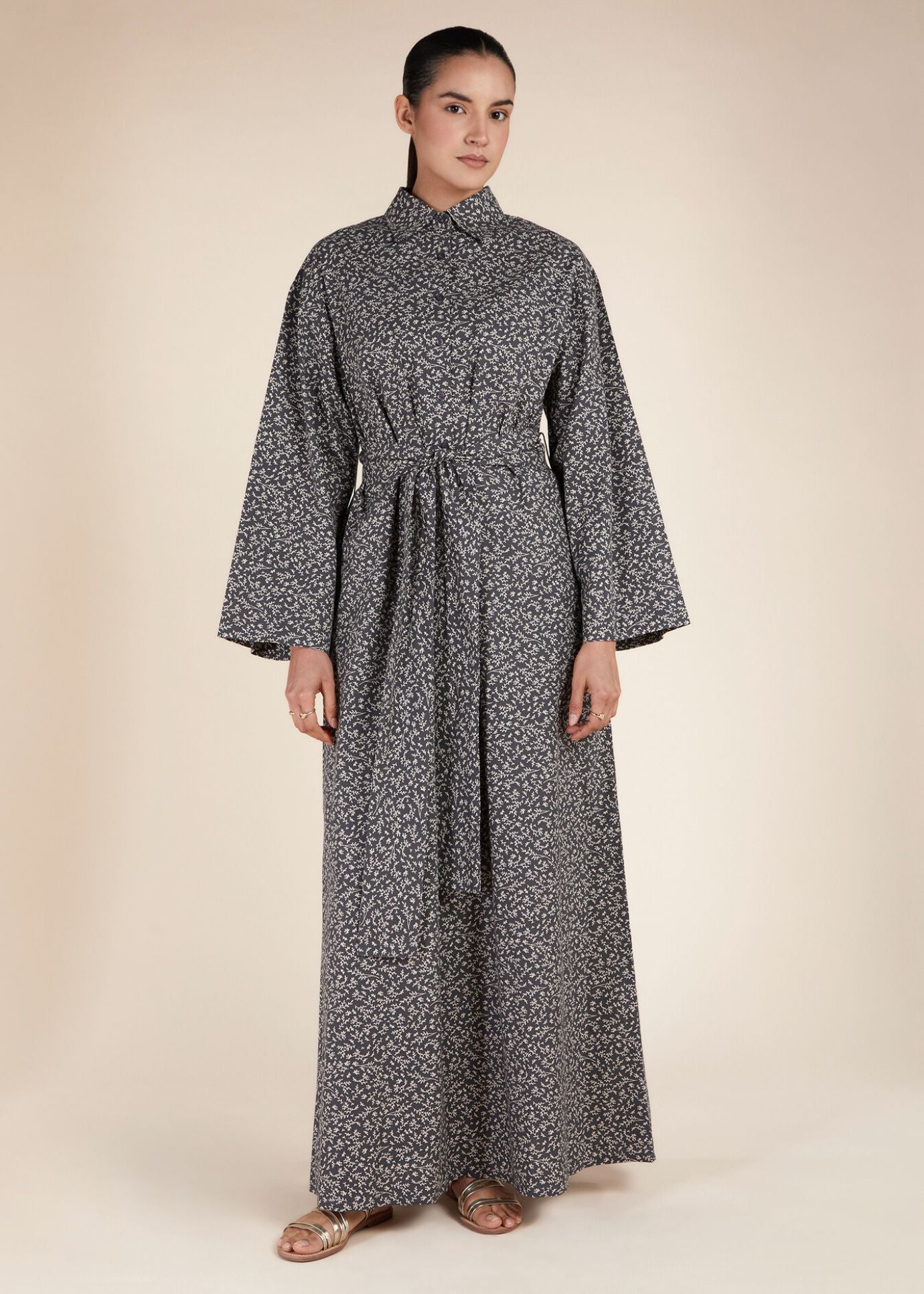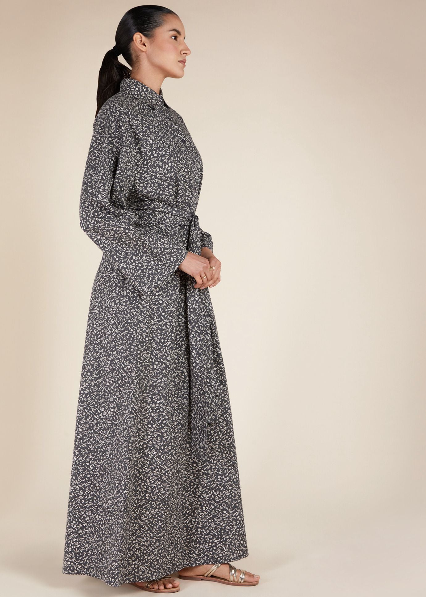 The White Ivy Cotton Maxi features a boxy silhouette and comes equipped with standard collars, hidden side pockets, and the option of a belt. Made from natural cotton, this breathable fabric is ideal for warm summer days.