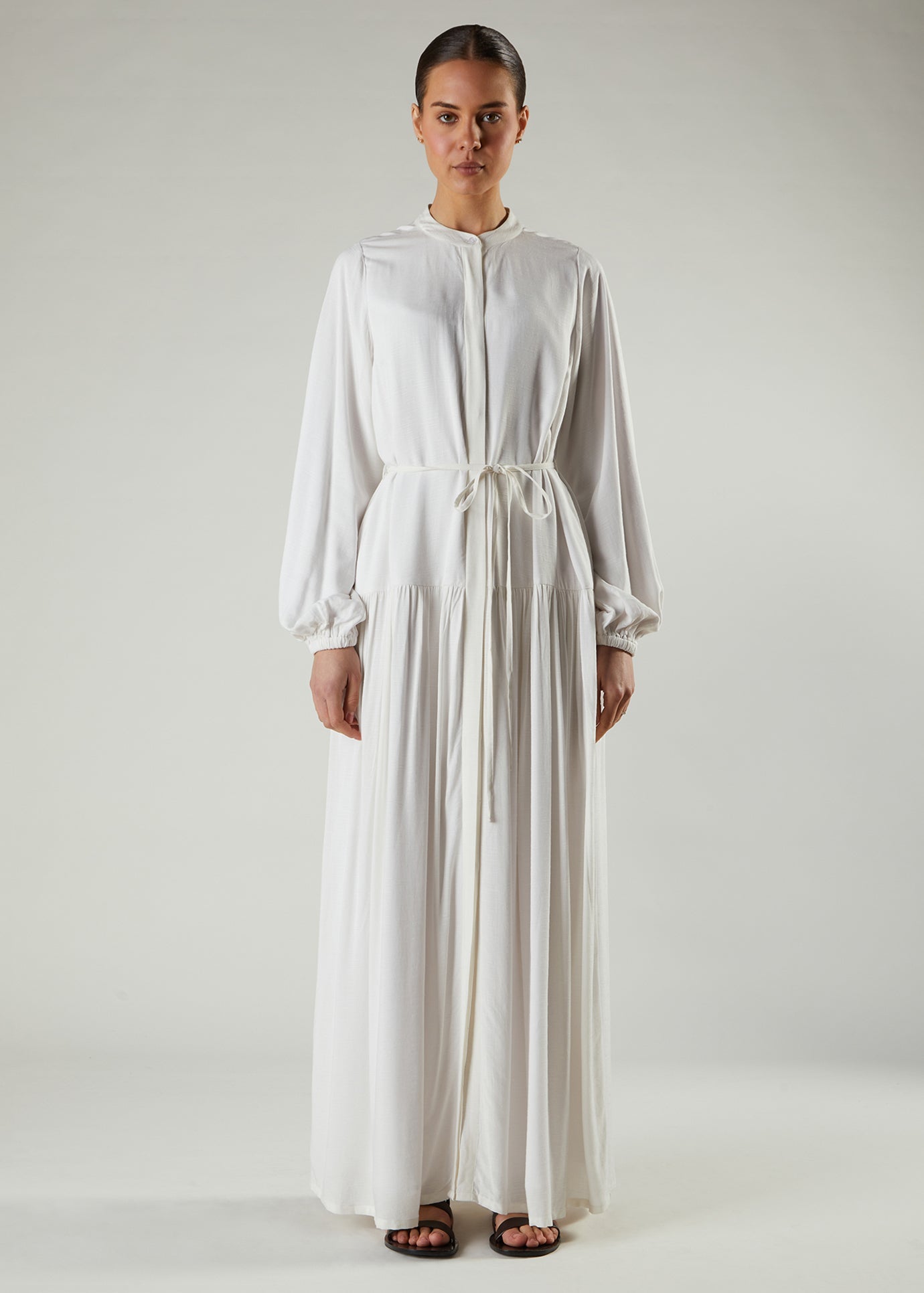 This plain white cotton maxi dress is fully lined and elegantly cut for maximum modesty and ideal for warmer days ahead as well as wearing for Umrah or Hajj.